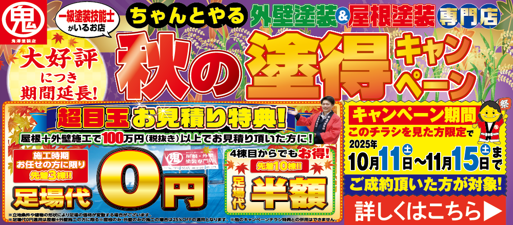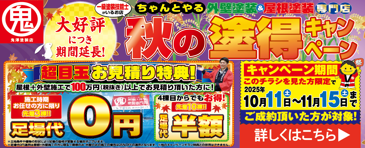 大好評につき期間延長!秋の塗得キャンペーン開催中!2025年10月