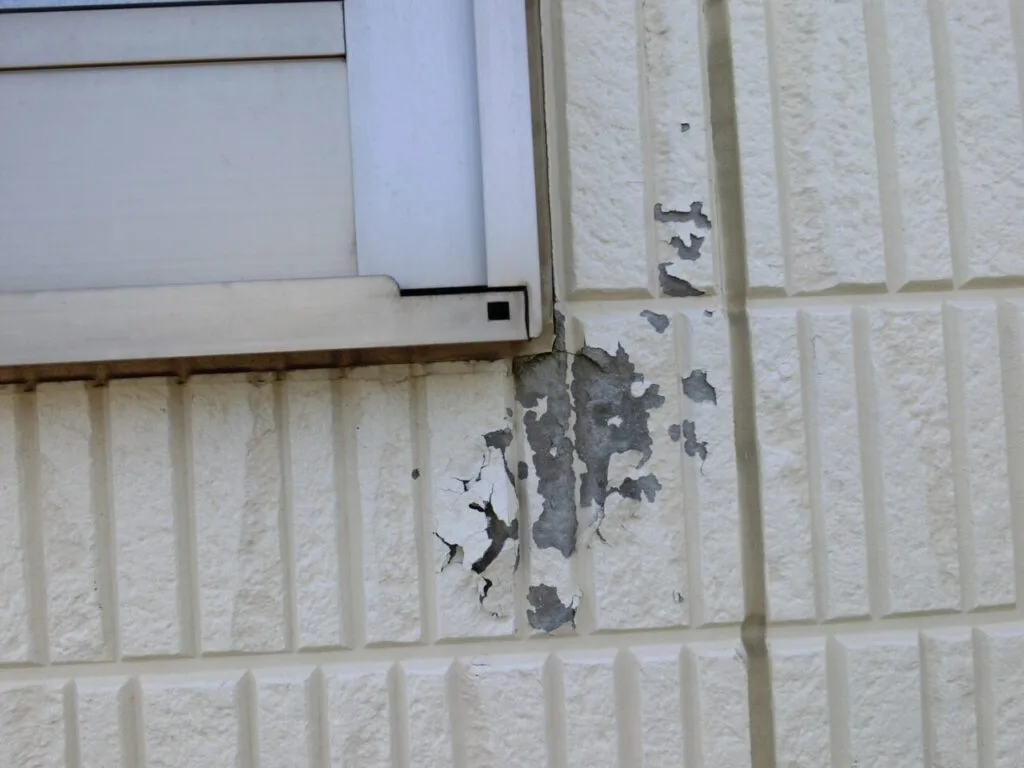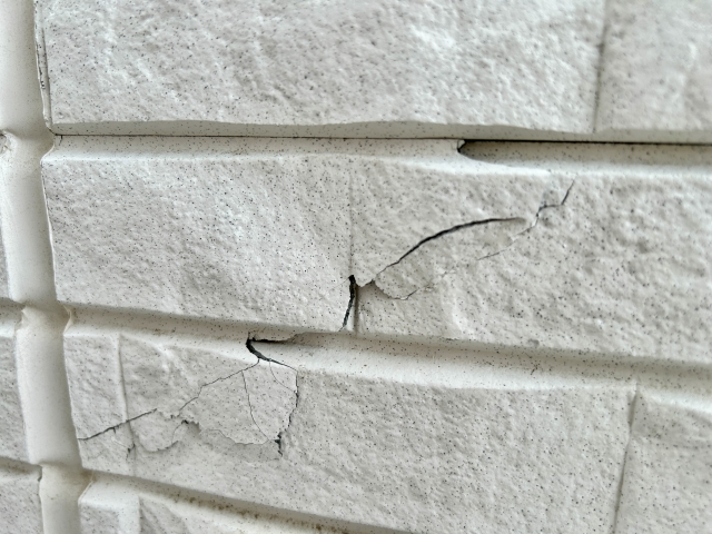 外壁材が膨張 → ひび割れ → 剥がれ → 破損