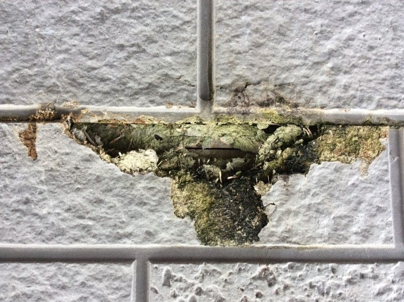冬場に凍って壁が内側から剥がれた状態です。