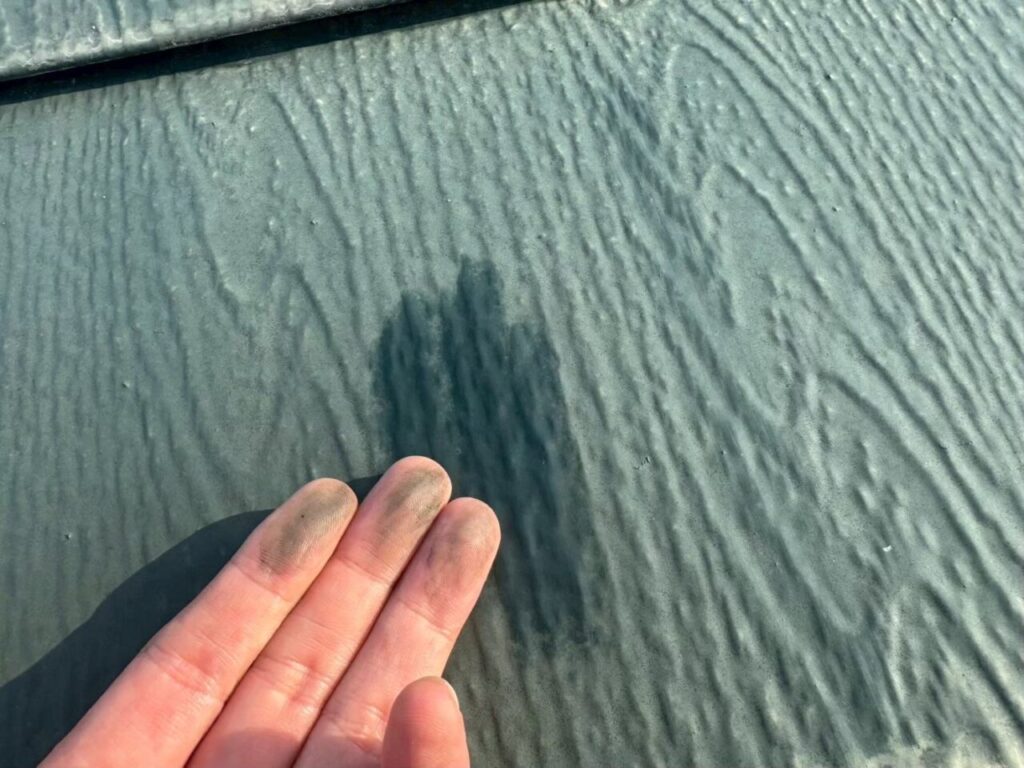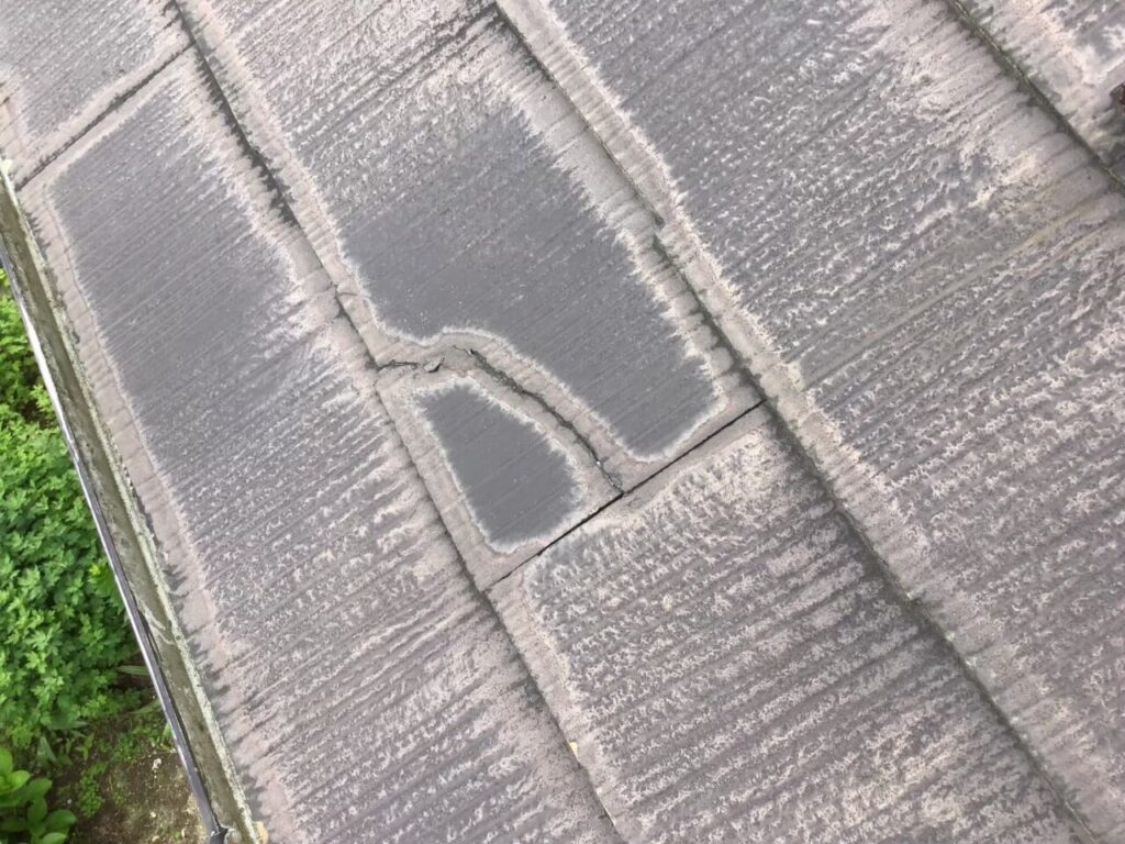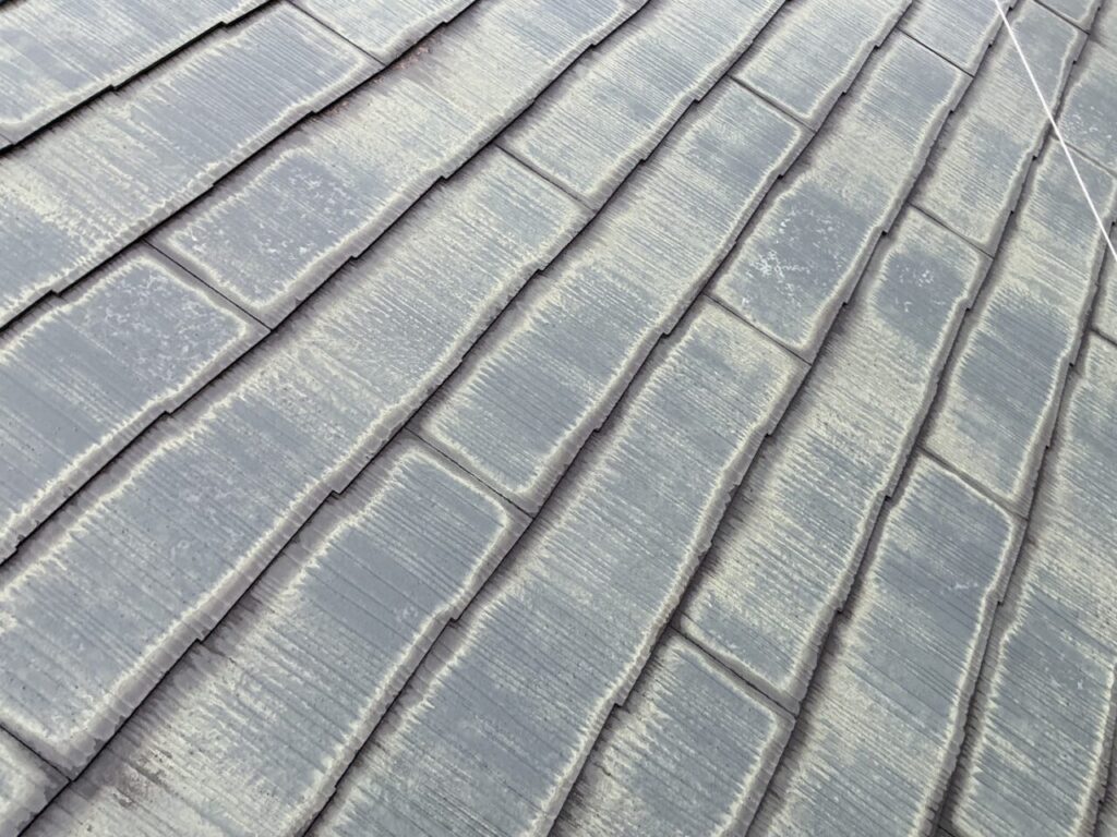 塗膜が剥がれ、屋根材そのものが水分を吸収しやすくなっています。放置すると雨漏りの原因になります。