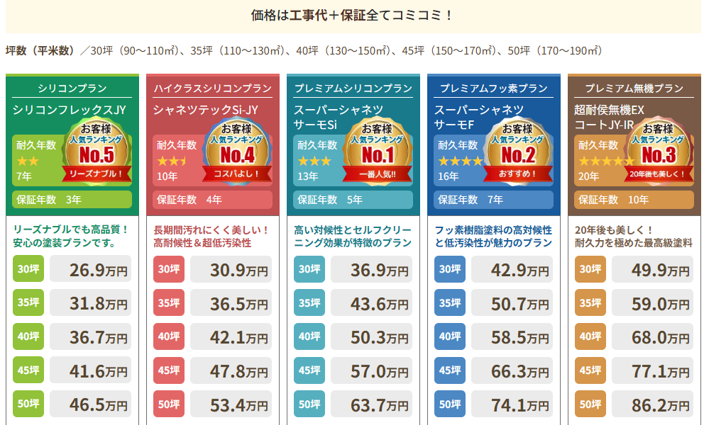 塗料の種類によって、価格、耐用年数、機能性が大きく異なります。予算やライフプランに合わせて選びましょう。
