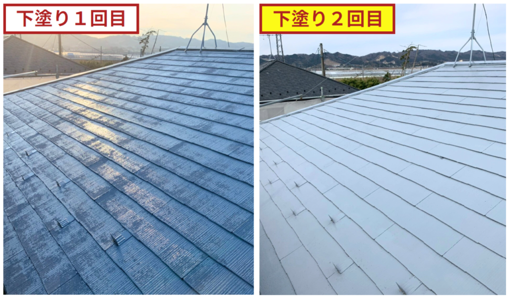 1回目の下塗り後と2回目の下塗り後を比較すると、