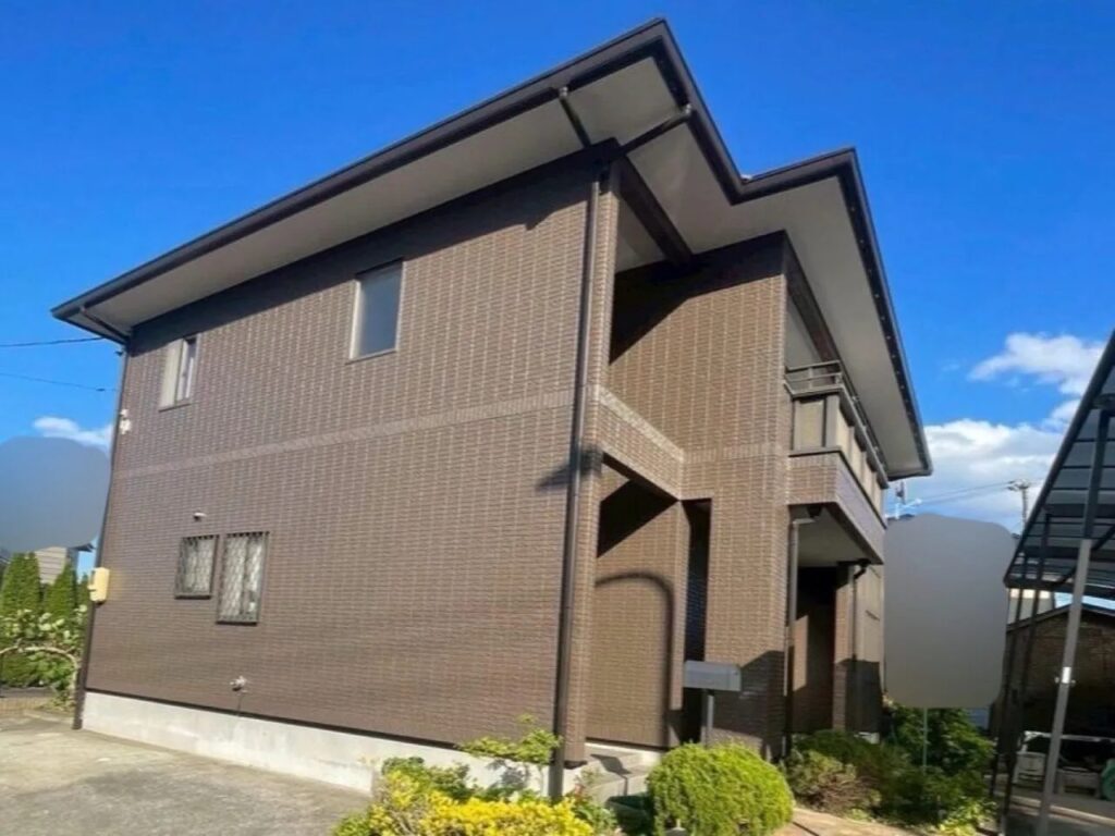 シックなブラウンが建物全体を引き締め、重厚感のある印象に。