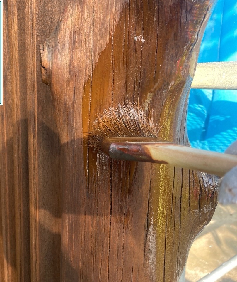 最後に、外部木部用の保護塗料を塗り重ねます。