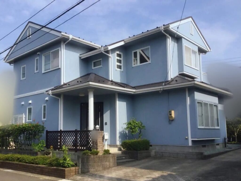 アステックペイントのブルーグレイで仕上げた外壁塗装です🏠