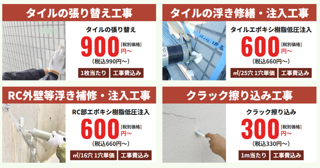 タイルのひび割れ補修や部分的な修繕工事にも対応しています。
