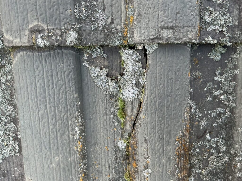 瓦にはひび割れも見られました。