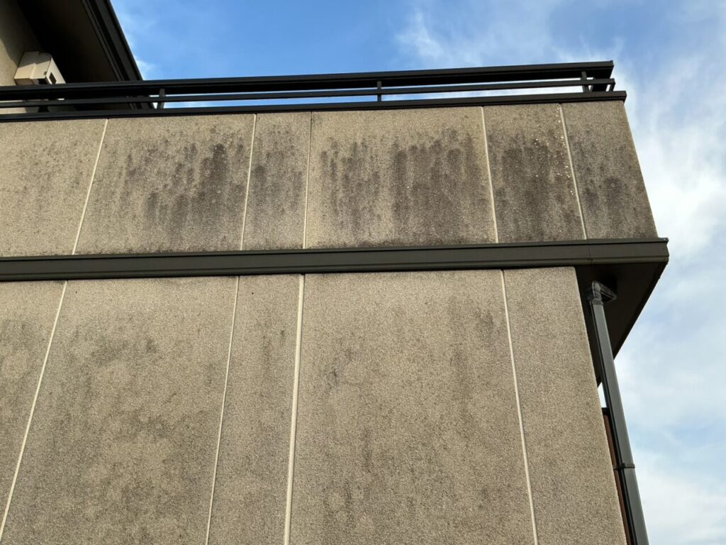 雨だれの跡や汚れの付着が