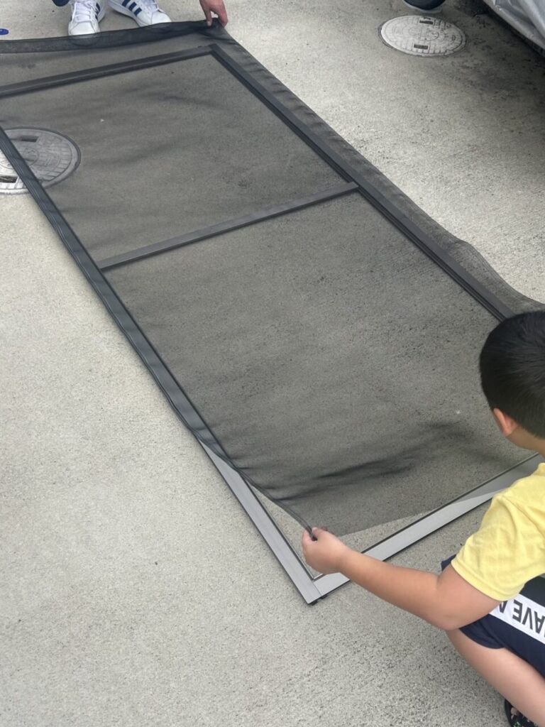 子どもたちにも手伝ってもらい網戸の張り替えをしました✨