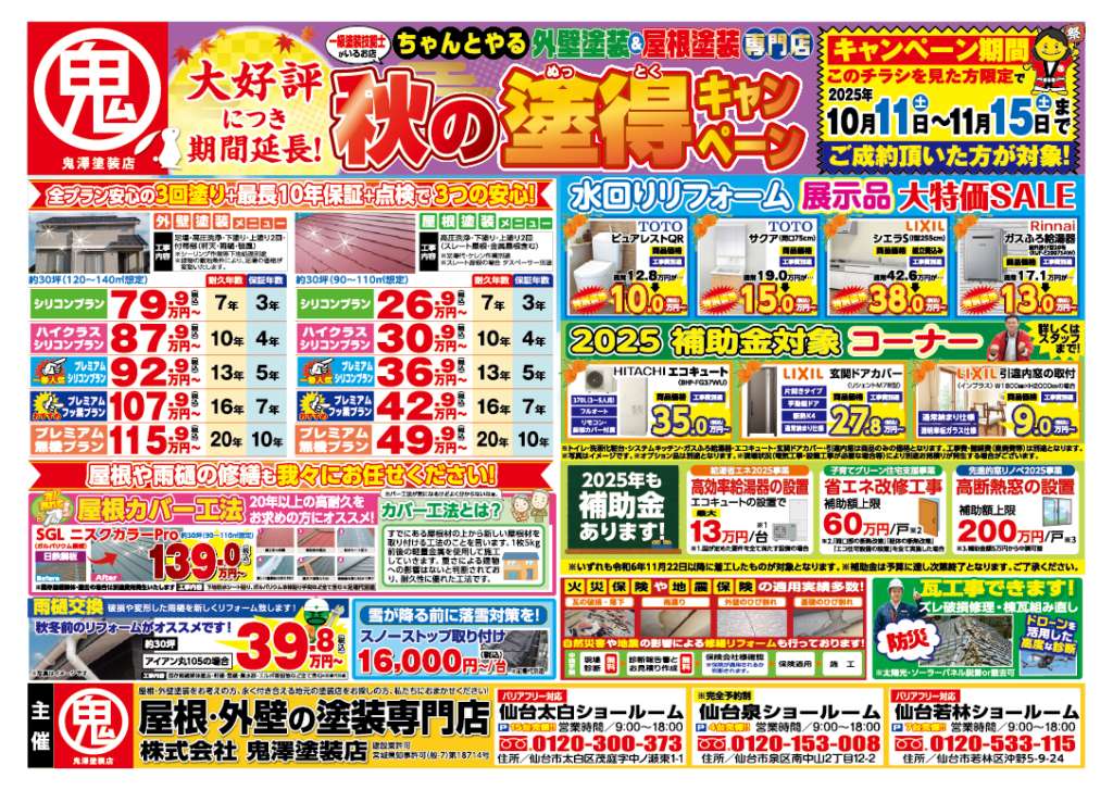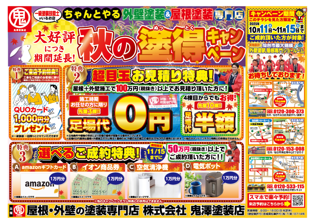 - 大好評につき期間延長!秋の塗得キャンペーン開催中!