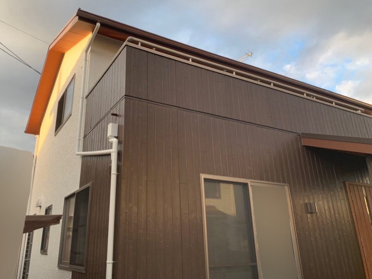 | 主な塗装・リフォーム内容 | 〈屋根〉《ラセットブラウン》 アステックペイント エポパワーメタルJY スーパーシャネツサーモSi 〈外壁〉《クリヤー シルキーホワイト》 アステックペイント エパパワーシーラー アステックペイント スーパーラジカルシリコンGH アステックペイント スーパーSDクリヤーSi-JY |