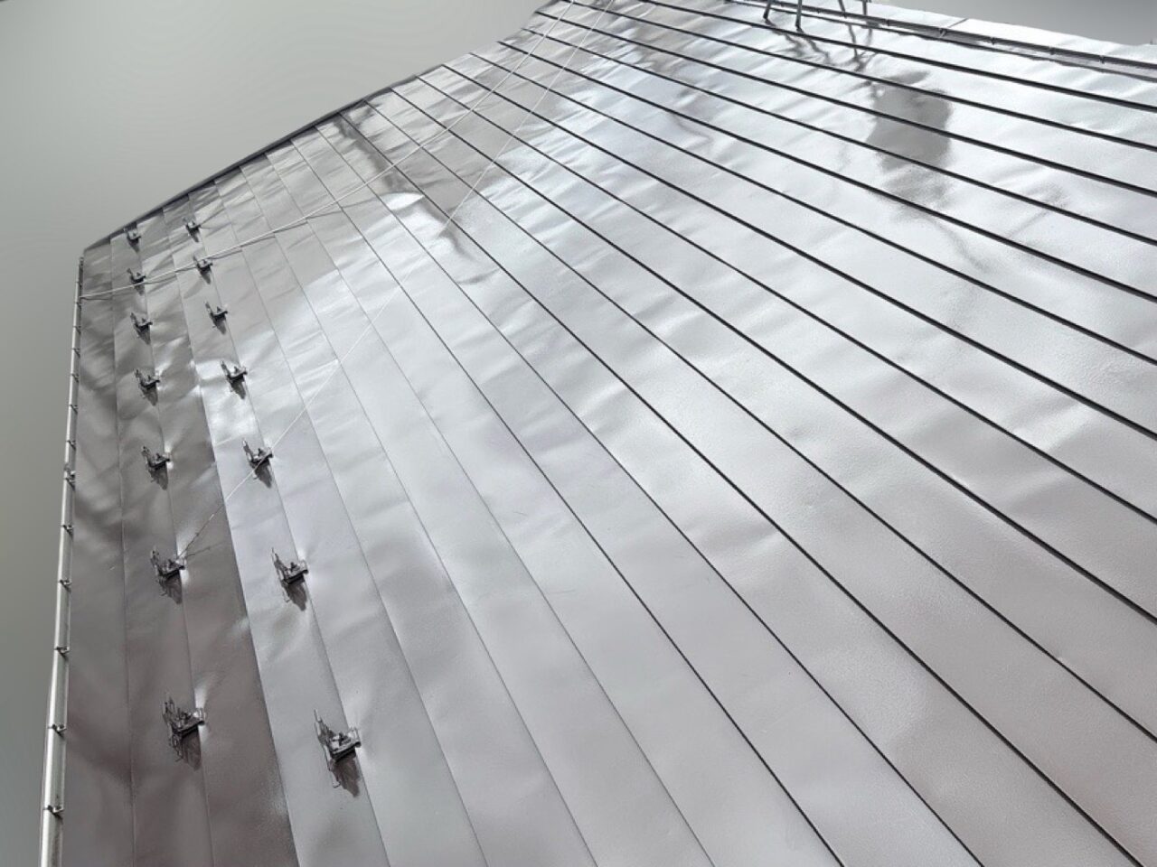 棟板金の釘の浮きが見られます。