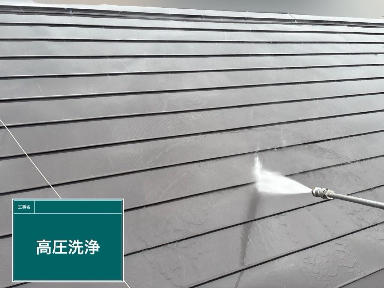屋根の高圧洗浄をしています。