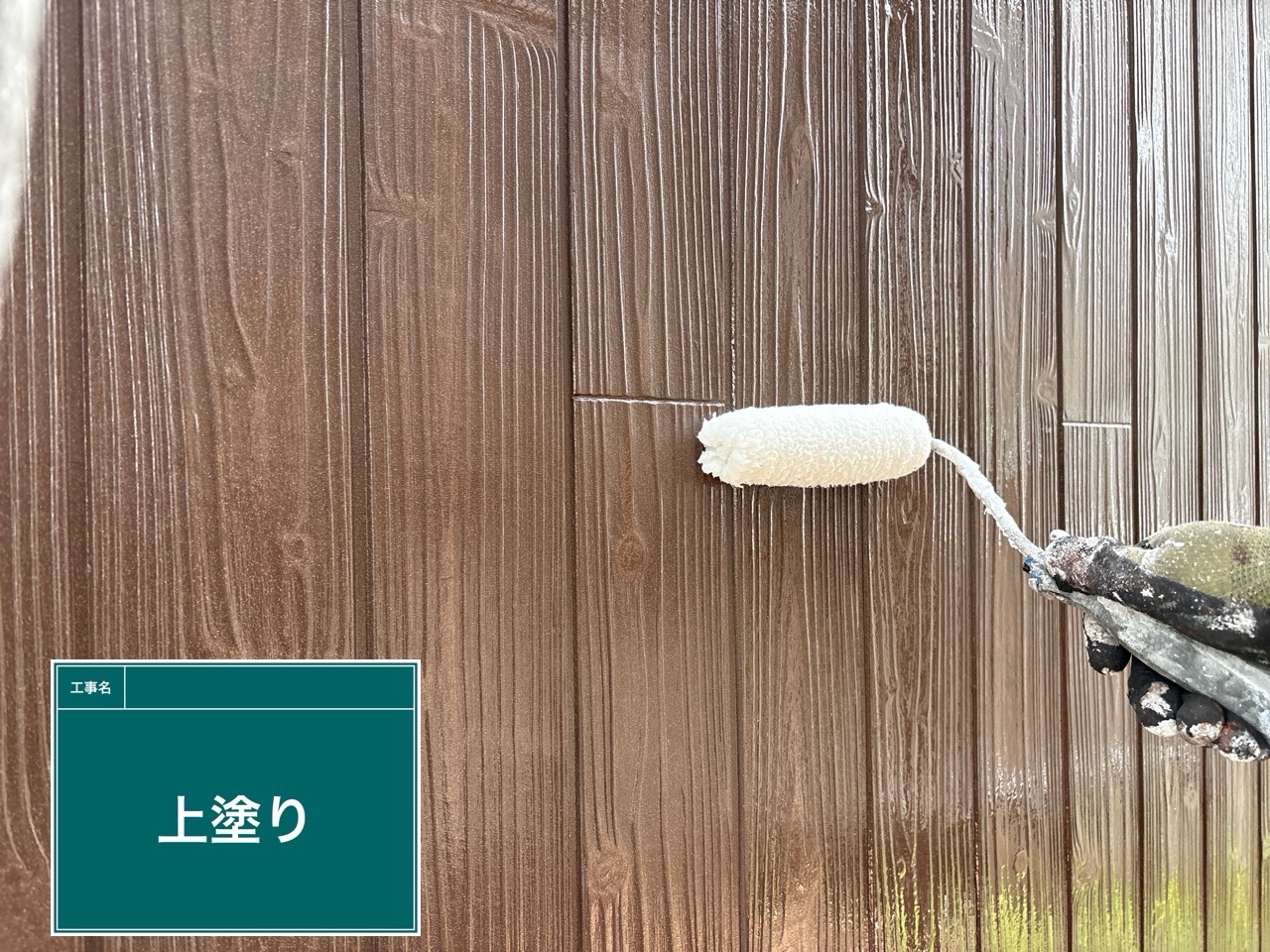 外壁に上塗りをしています。