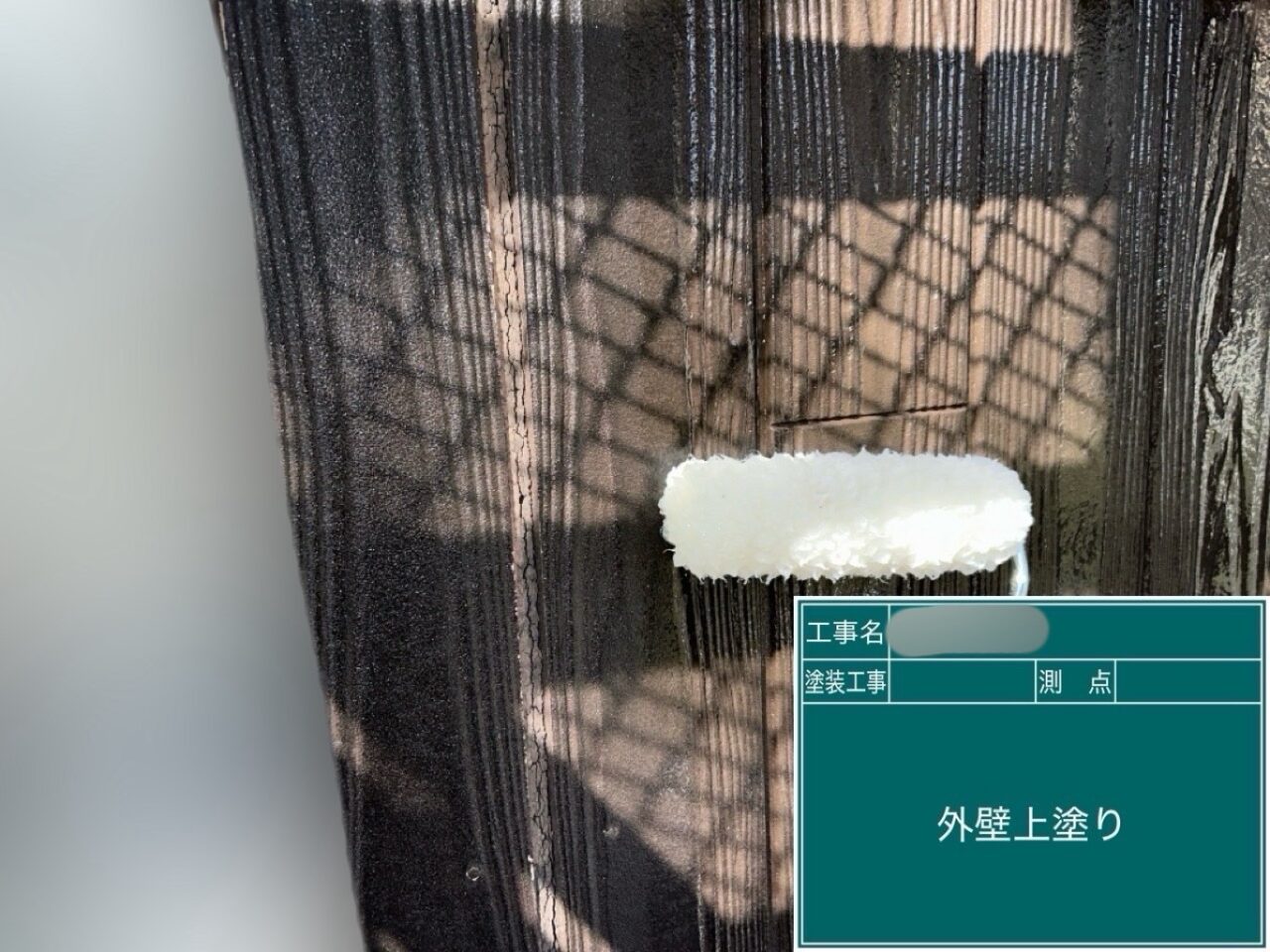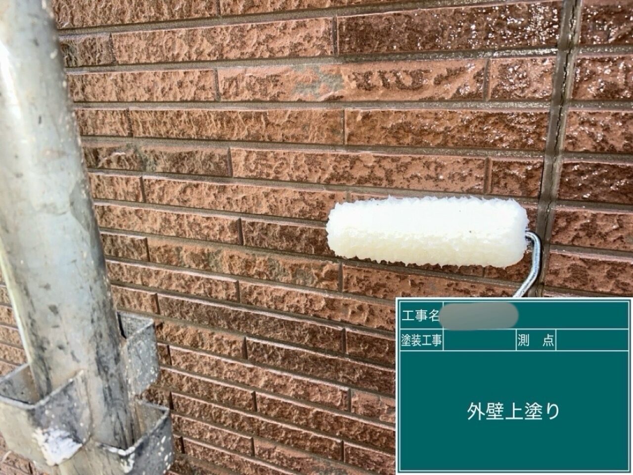 外壁に上塗りをしています。