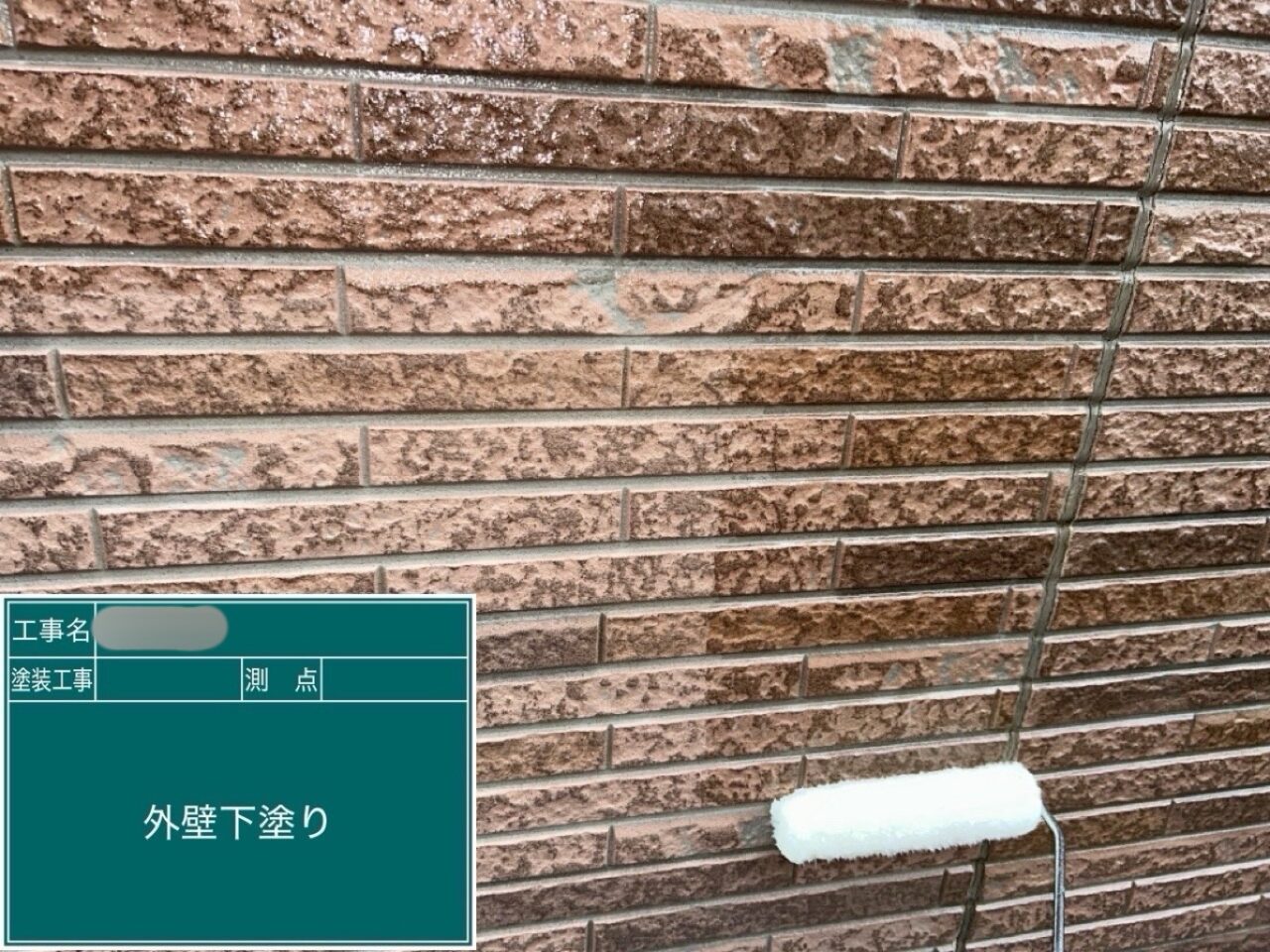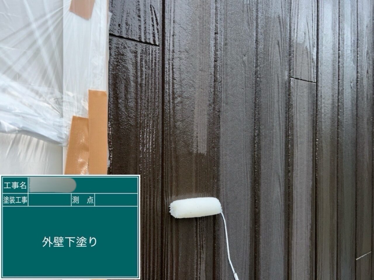 外壁に下塗りをしています。