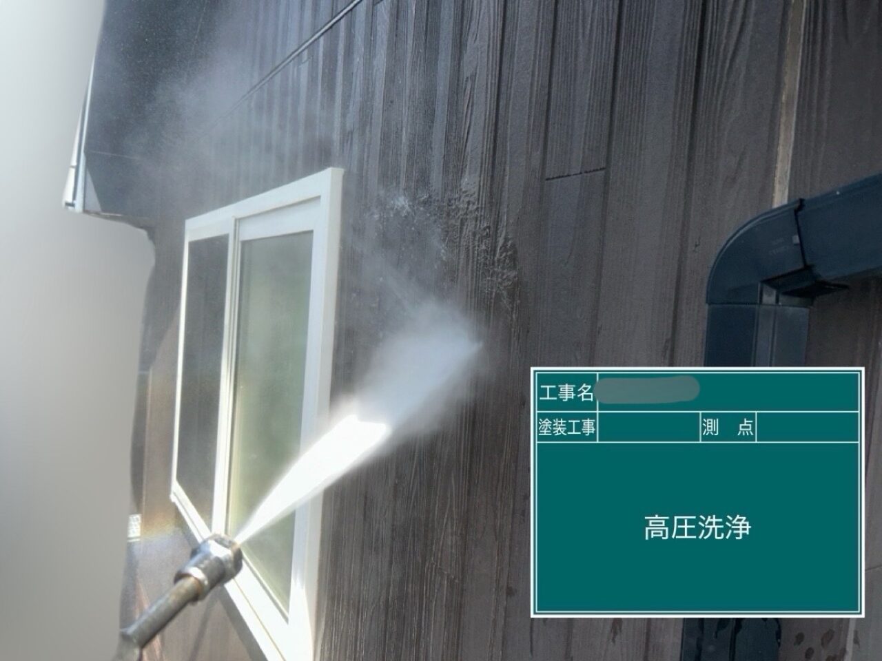 外壁に高圧洗浄をしています。