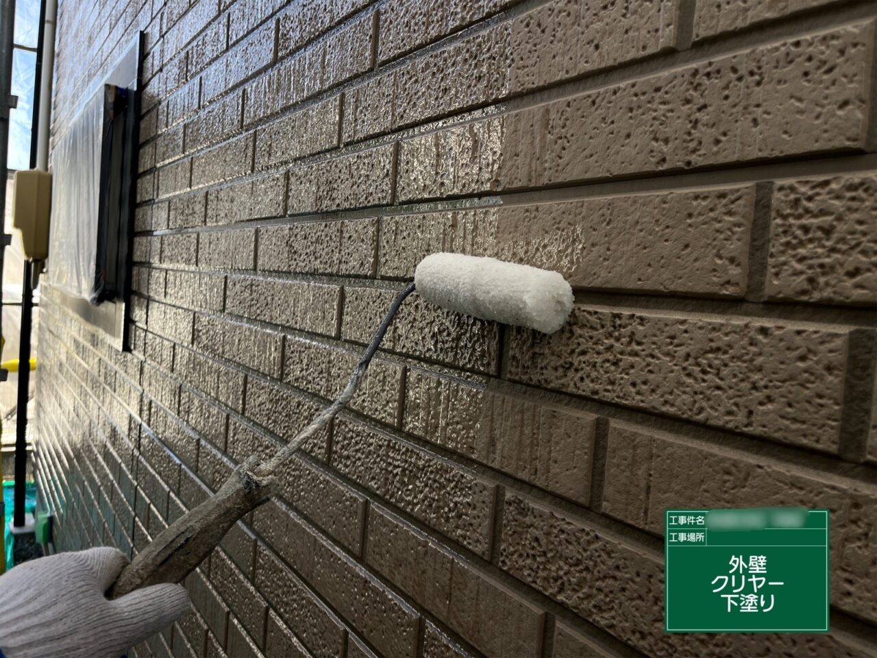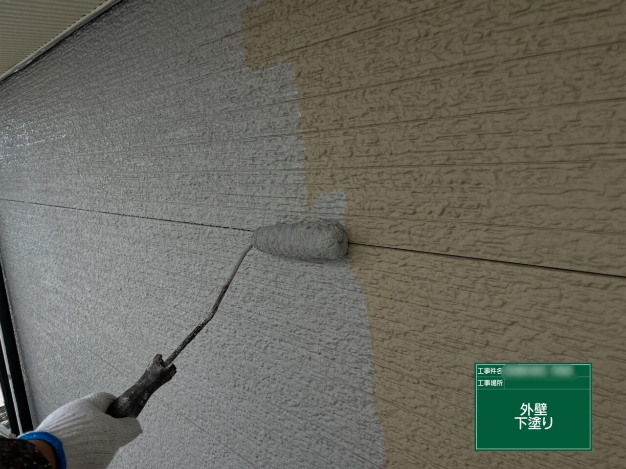 1階外壁に下塗りをしています。