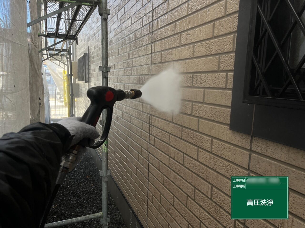 外壁の高圧洗浄をしています。
