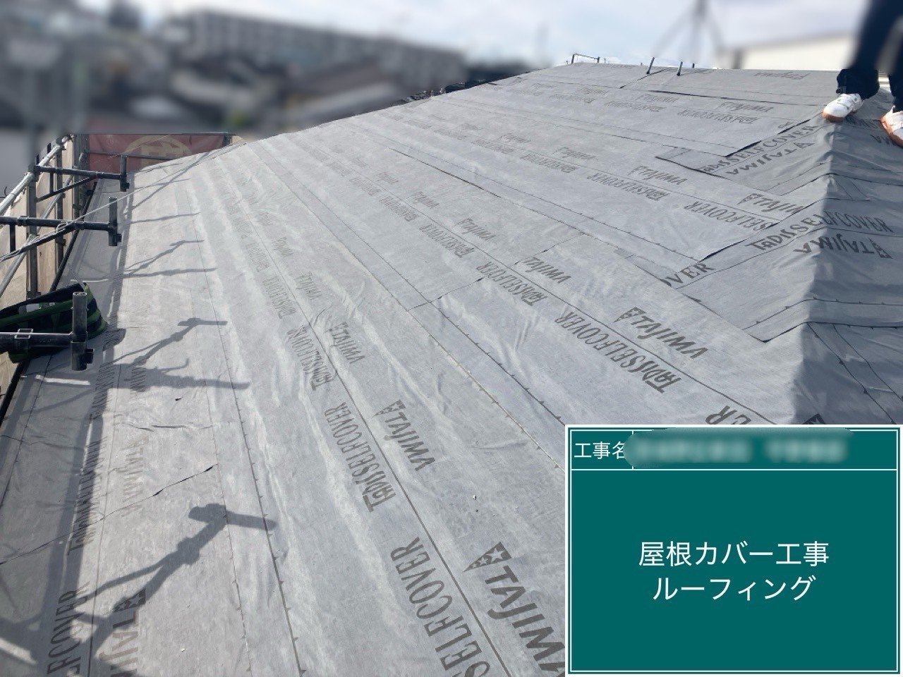 防水シートを貼っています。