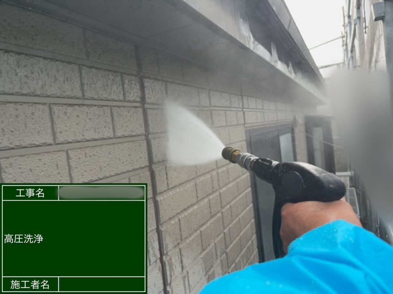 外壁の高圧洗浄をしています。