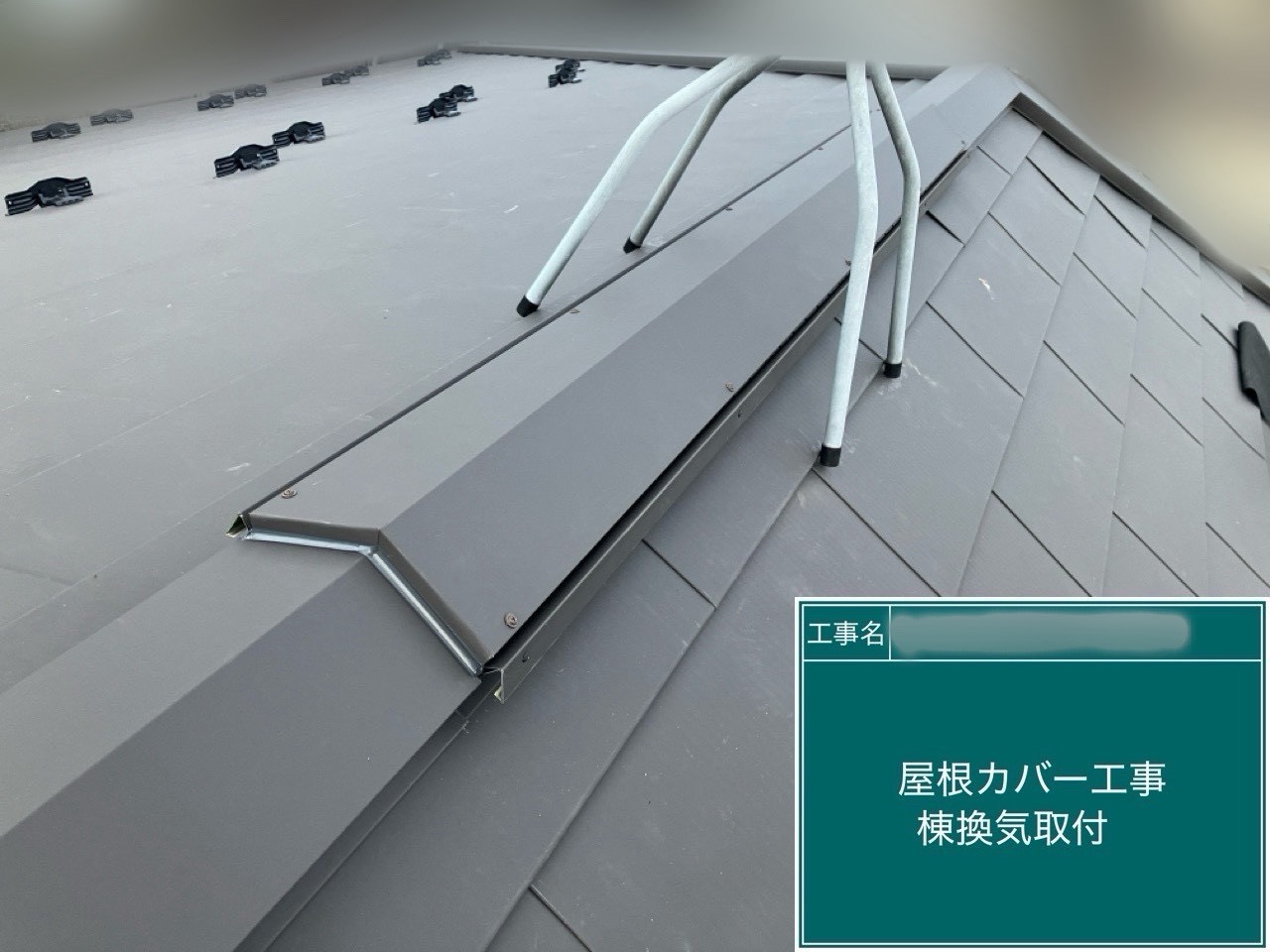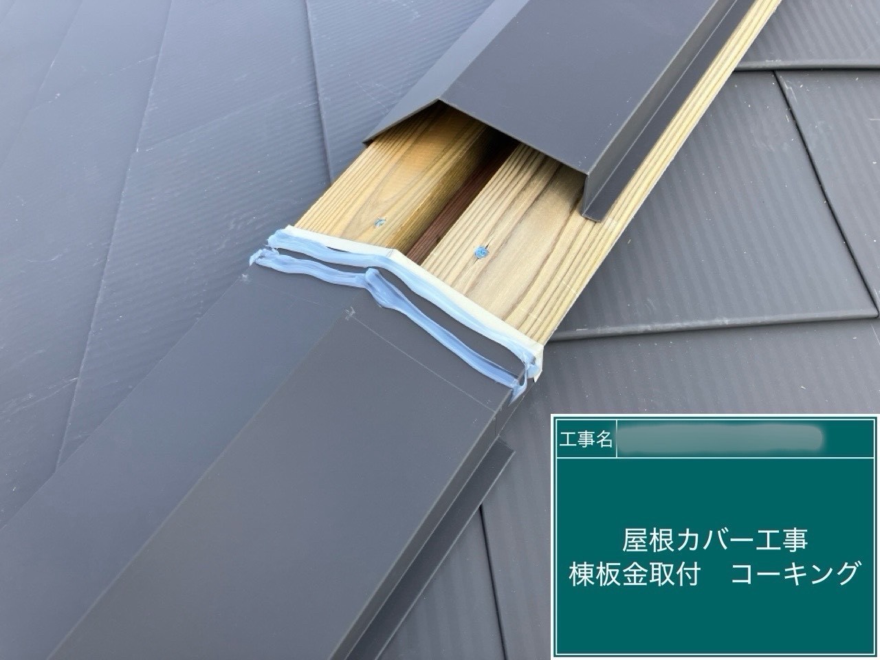 棟板金を取り付けています。