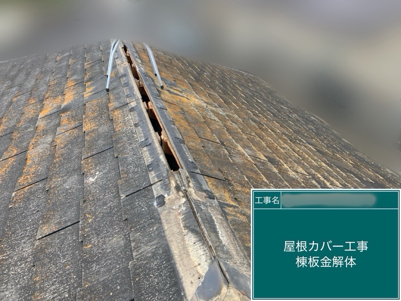 既存の棟板金と木下地を解体しました。