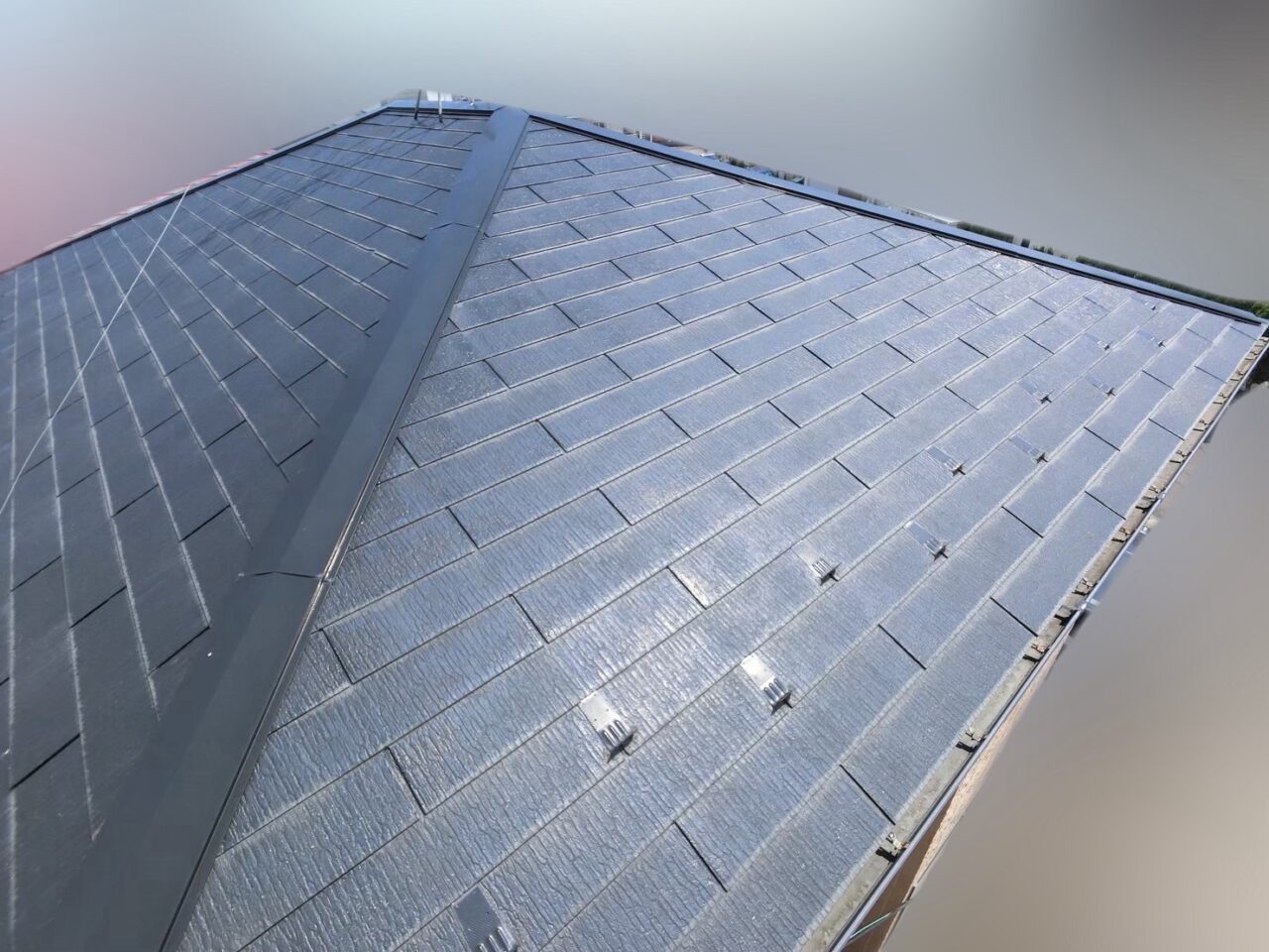 経年劣化による全体的な退色が見られます。防水機能が低下している状態です。