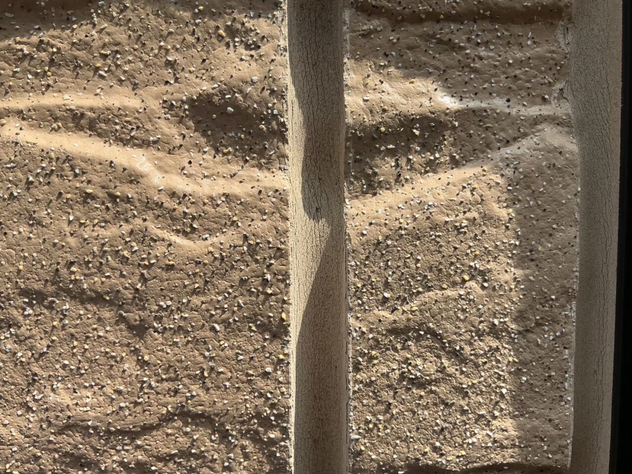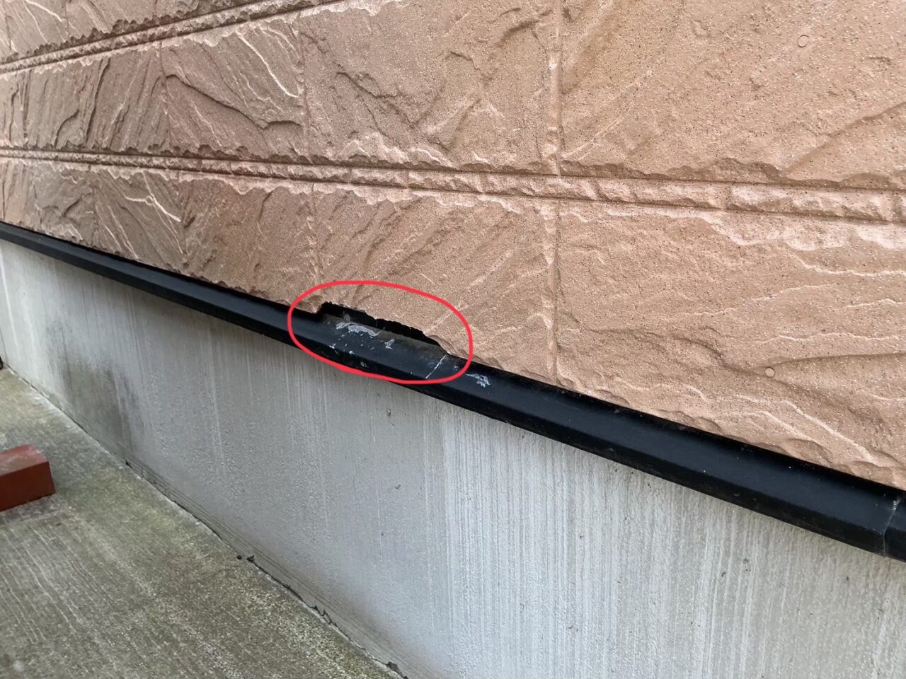 外壁に欠損が見られます。防水機能が低下しており外壁材自体の劣化に繋がる恐れがあります。