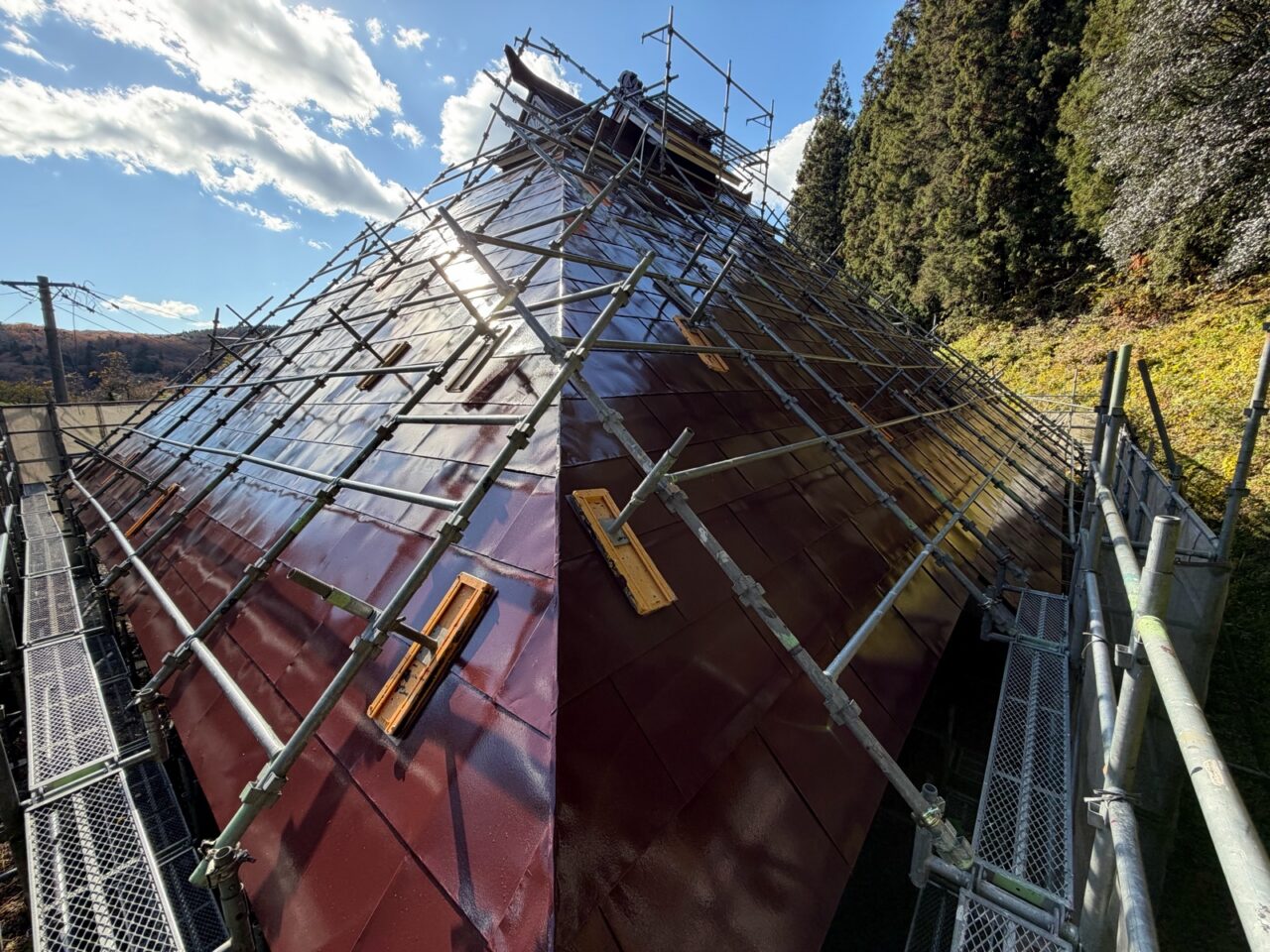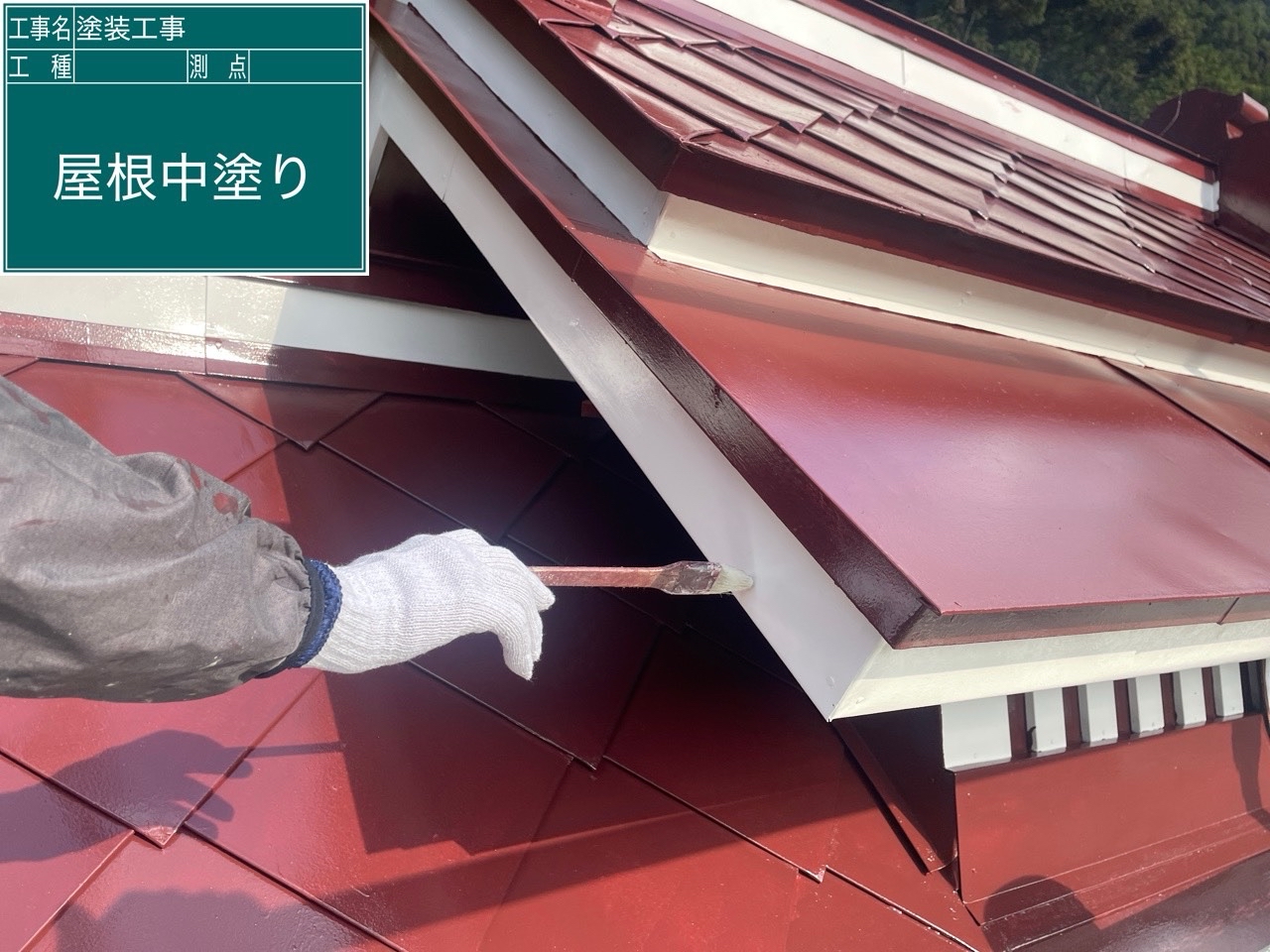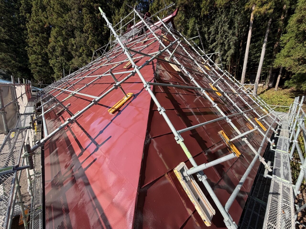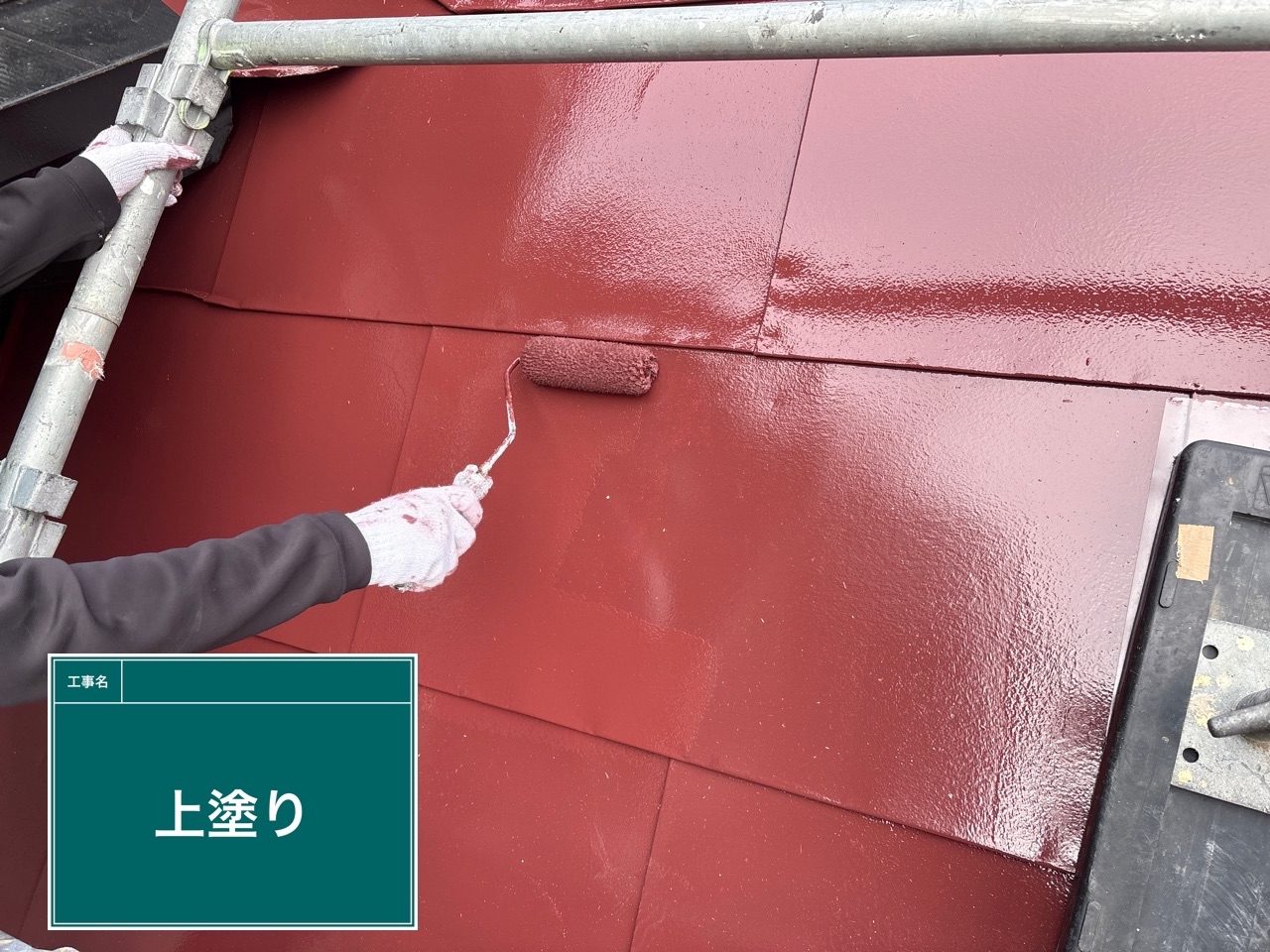 | 主な塗装・リフォーム内容 | 〈屋根塗装〉《バーガンディ 白色部:クールホワイト》 アステックペイント エポパワーメタルJY アステックペイント スーパーシャネツサーモF |