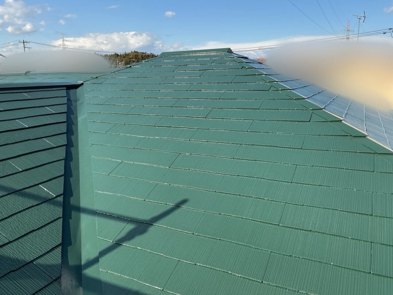 屋根は4回塗り・外壁は3回塗りを経て塗膜が復活し艶やかです。