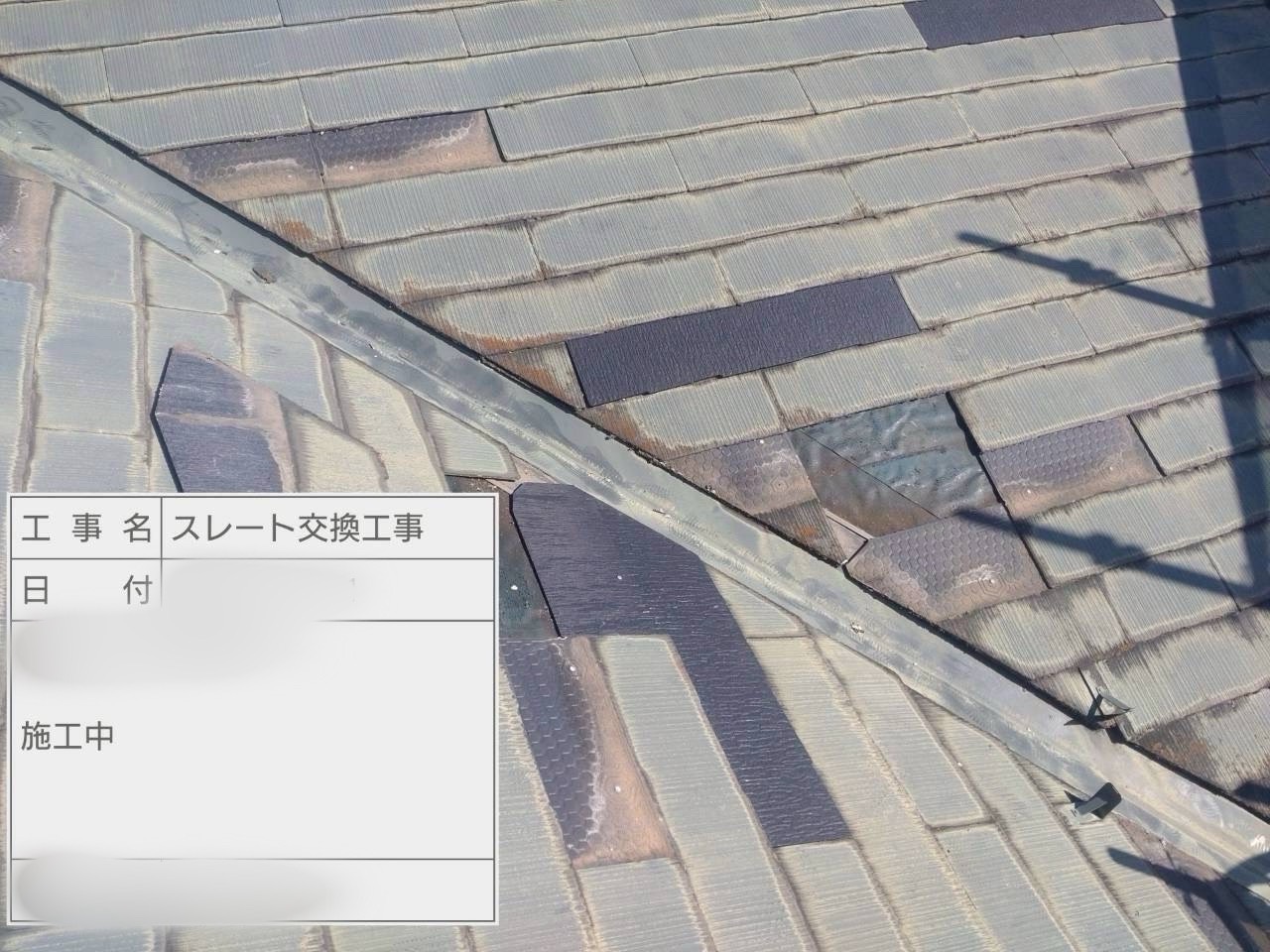 既存の瓦を撤去し新しいスレート瓦を取り付けています。