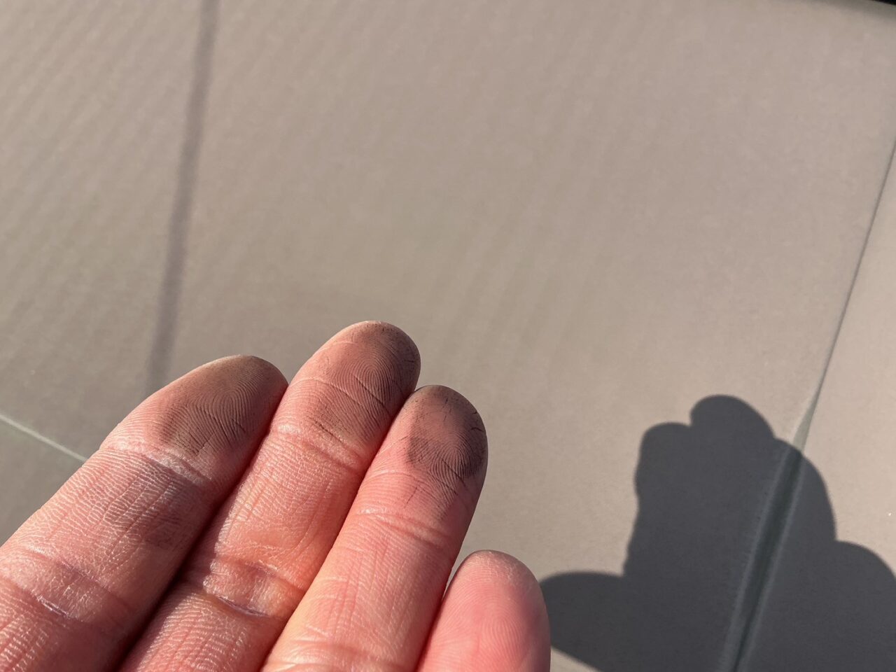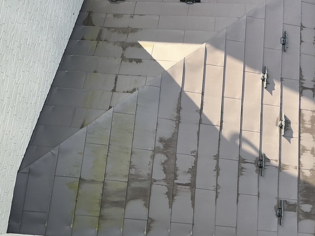 紫外線や風雨の影響により退色し、防水機能が低下している状態です。