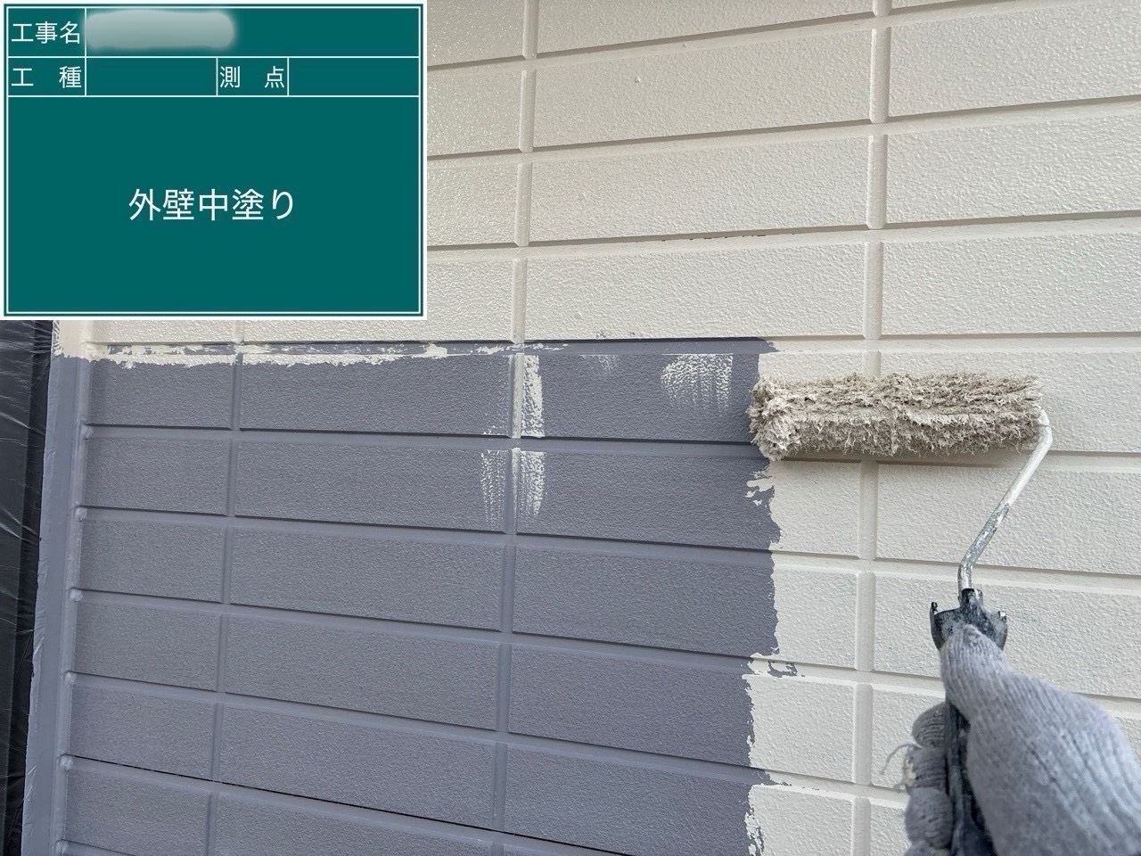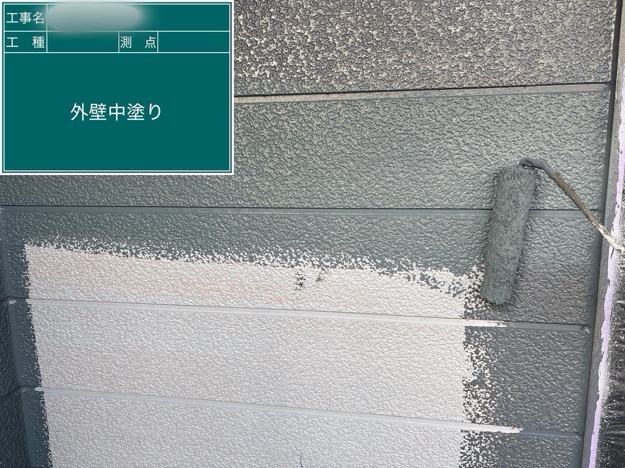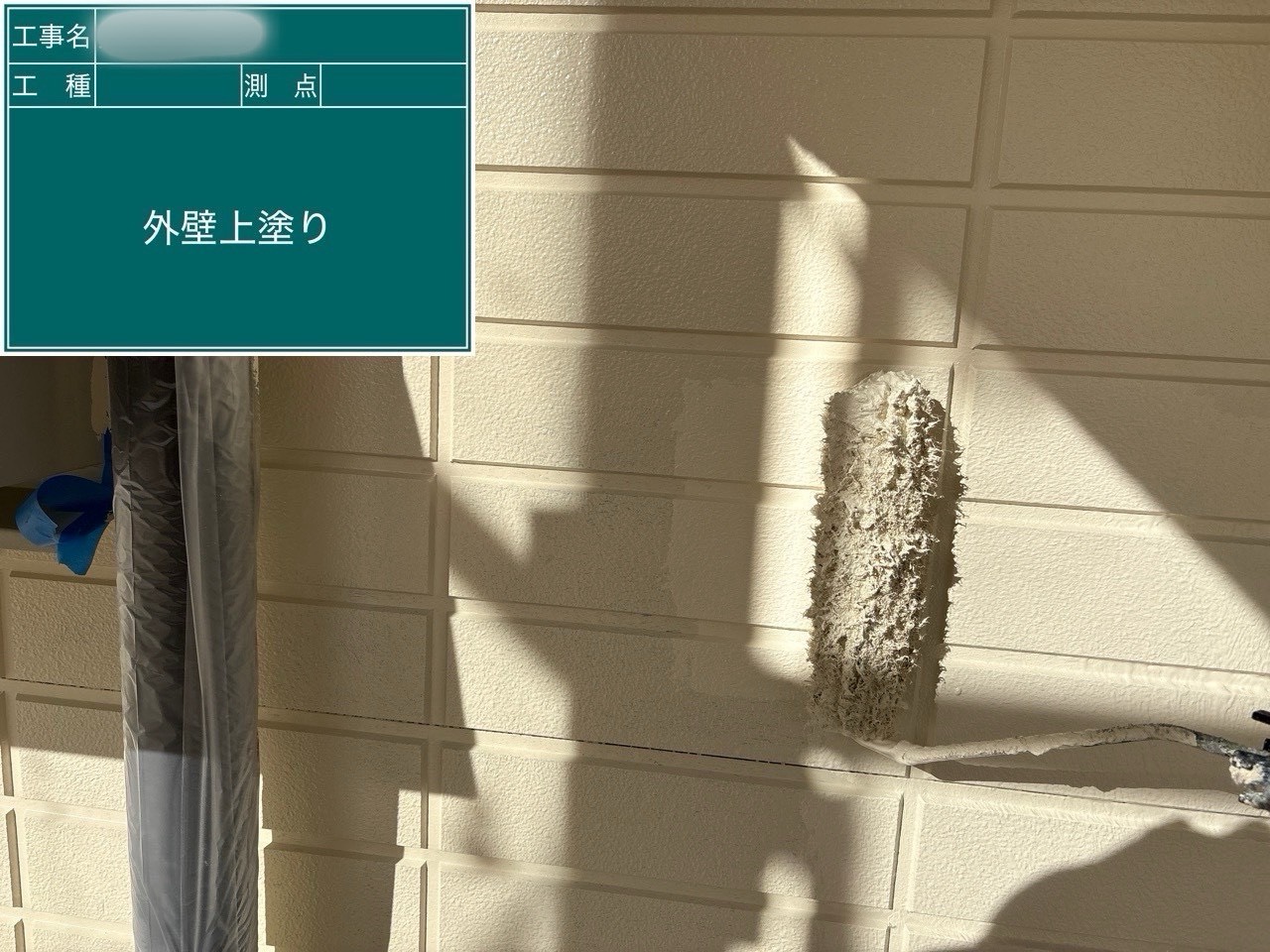 1階外壁に1回目の上塗り(中塗り)をしています。