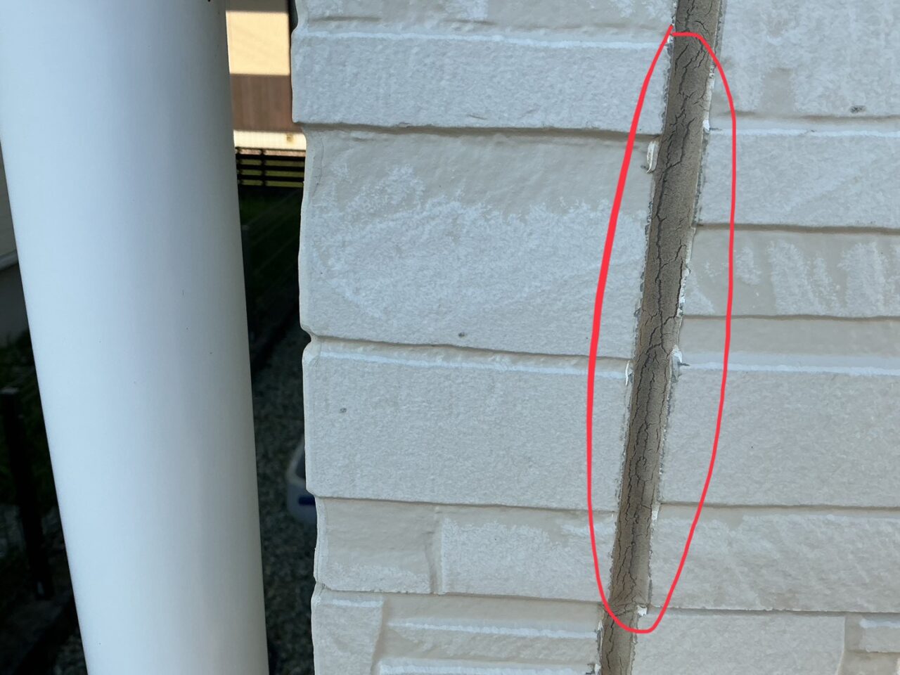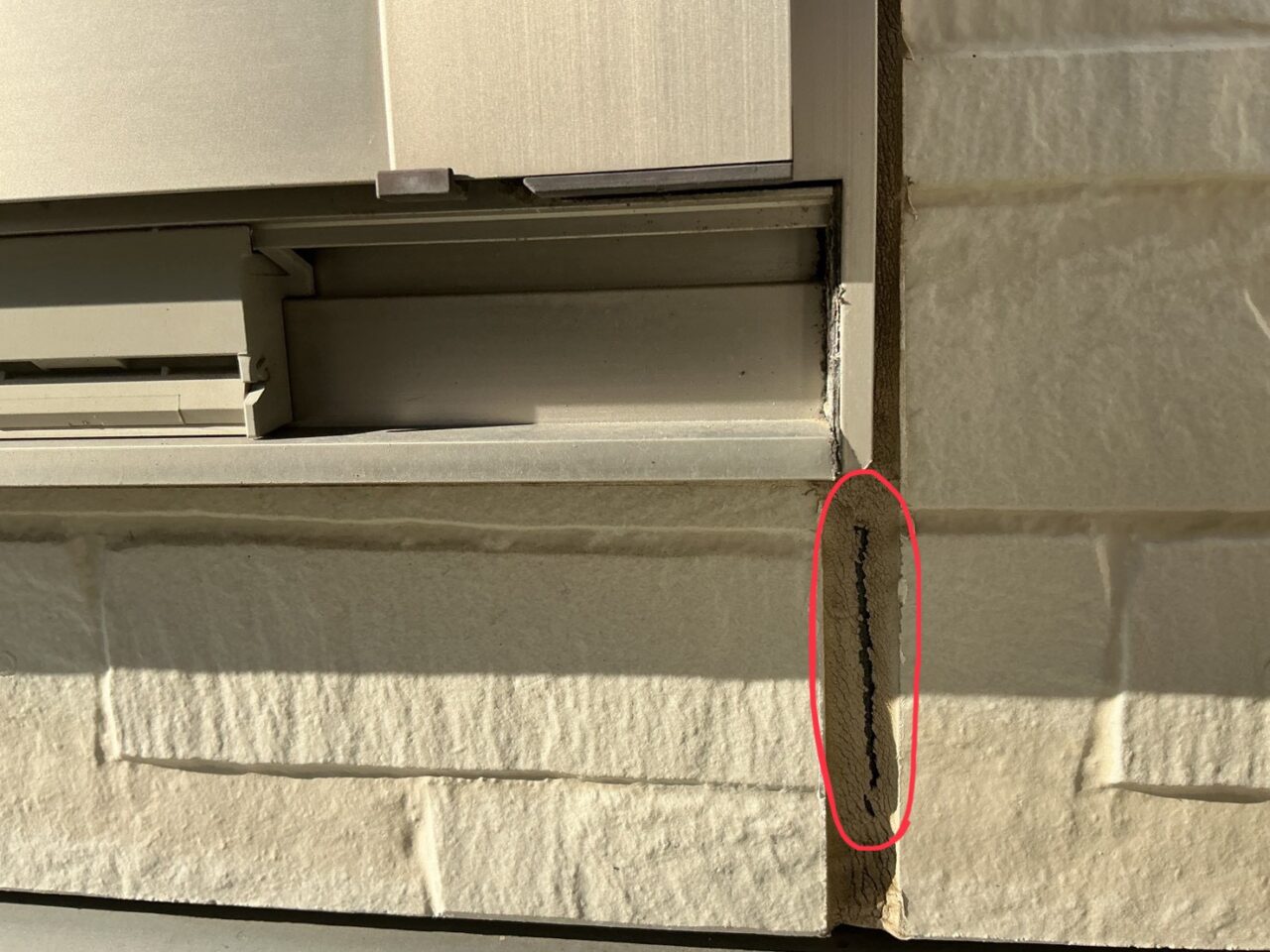 シーリングに破断が見られます。破断箇所から内部に雨水が侵入する可能性があります。