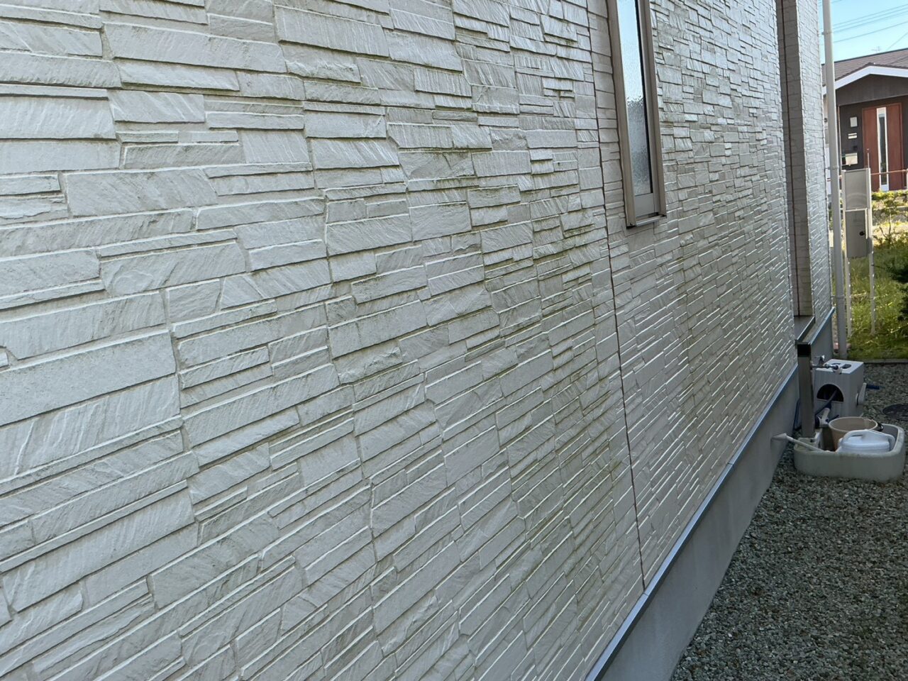 外壁も防水機能が低下している状態の為湿気を含み苔の発生が見られます。