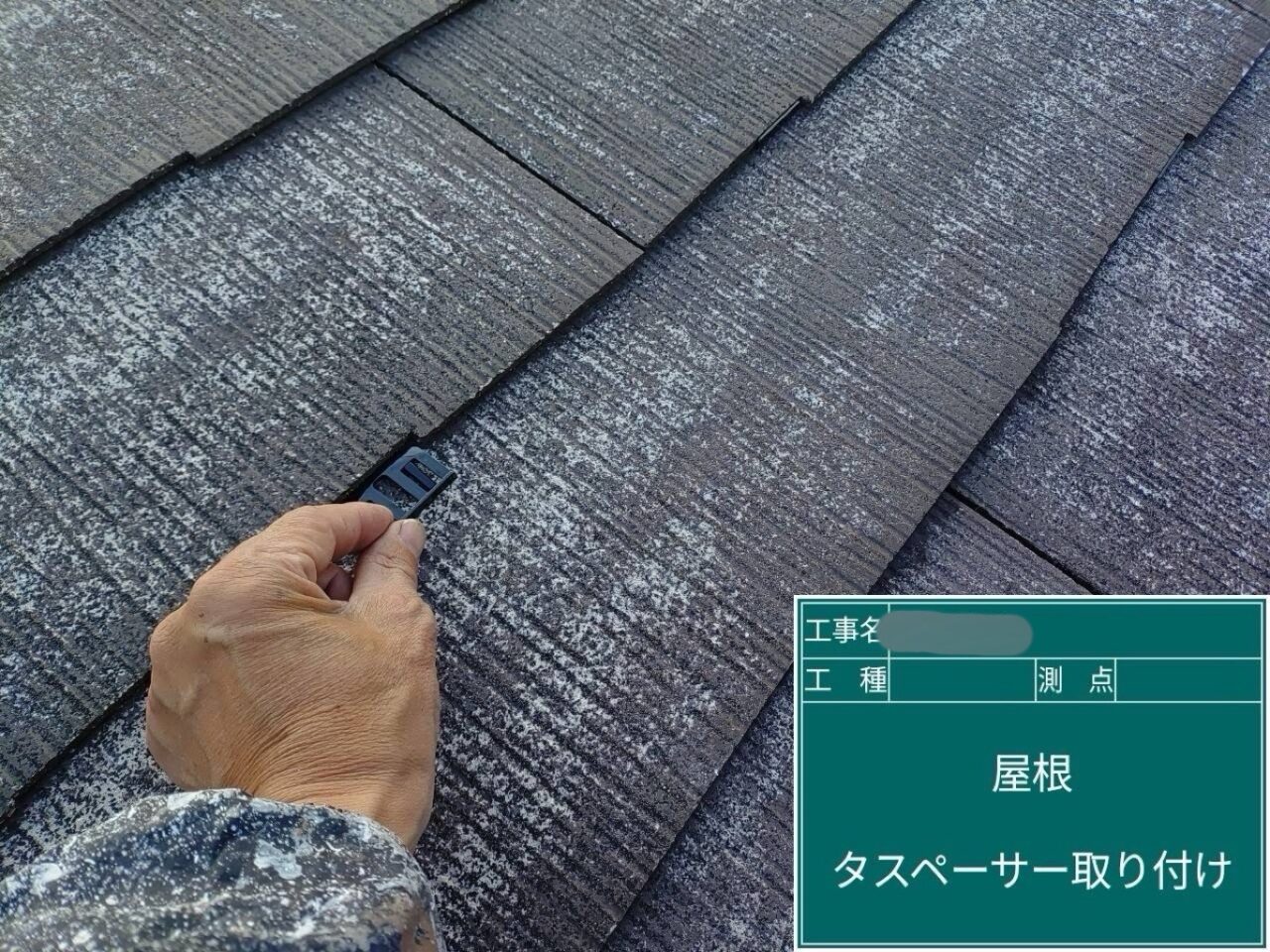屋根にタスペーサーを取り付けています。