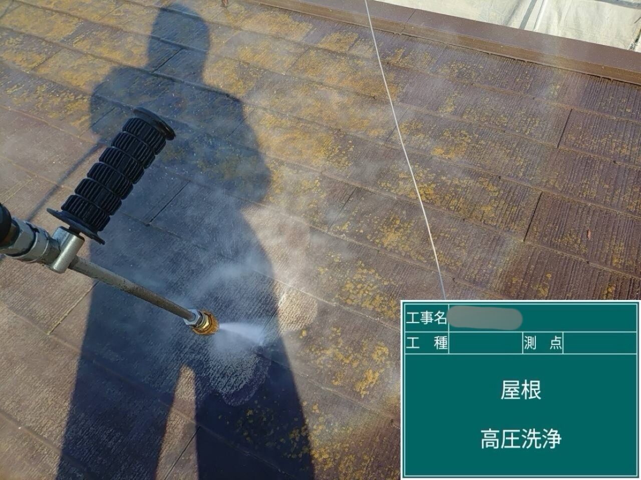屋根の高圧洗浄をしています。
