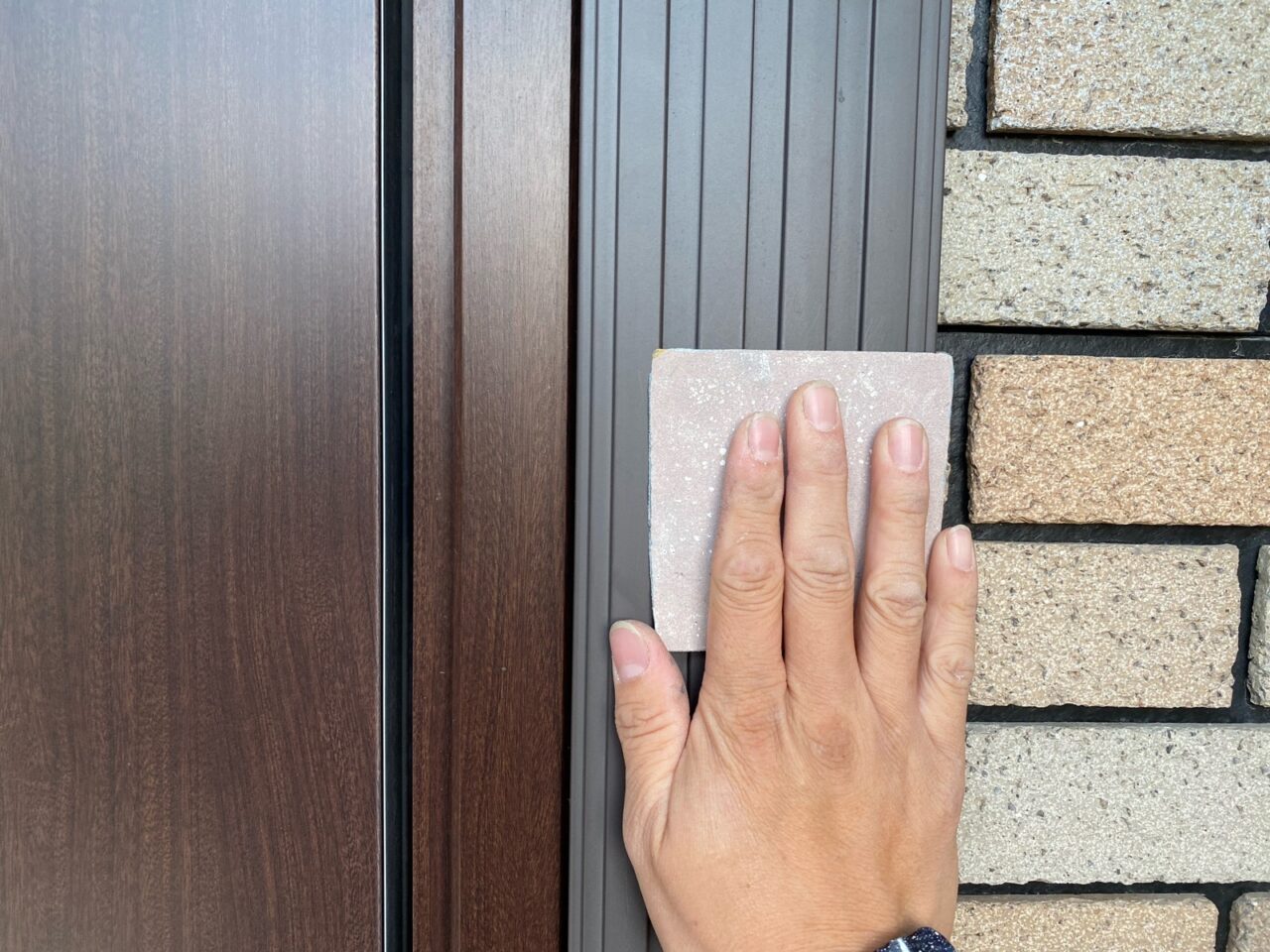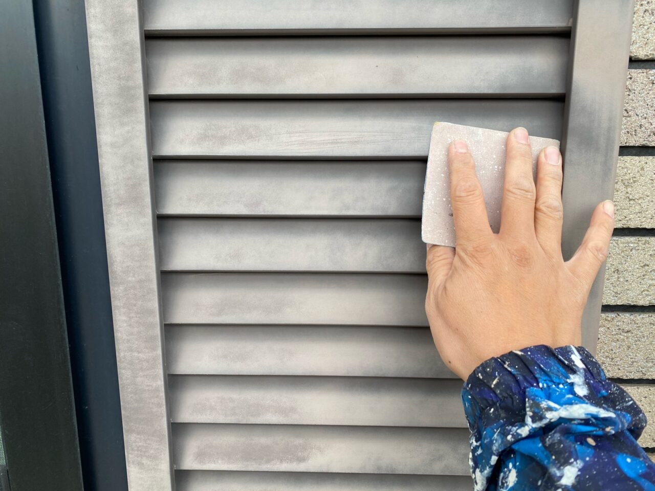 戸袋にケレン作業をしています。