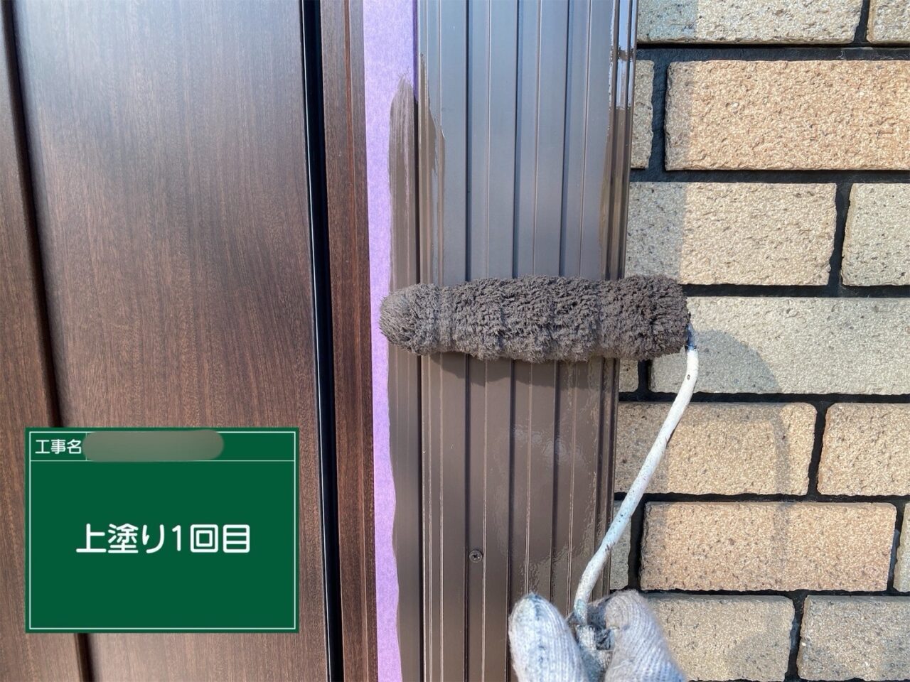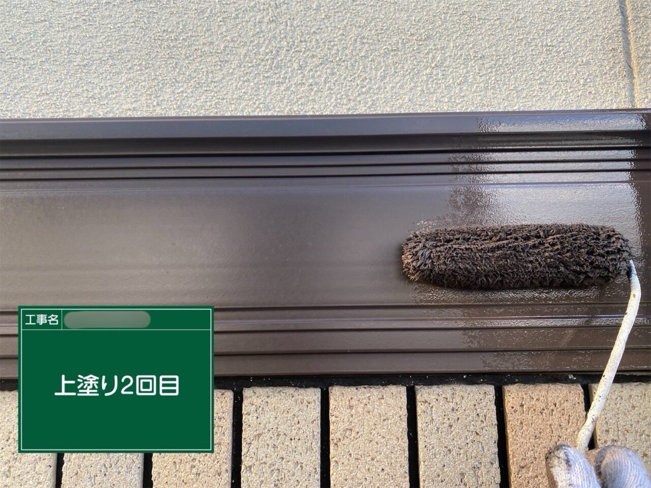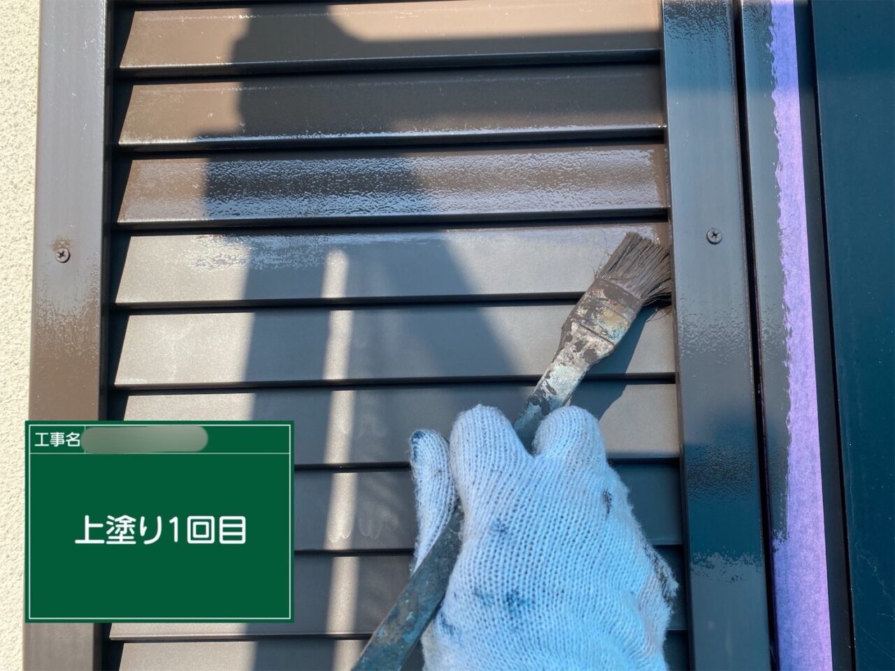 戸袋に1回目の上塗りをしています。