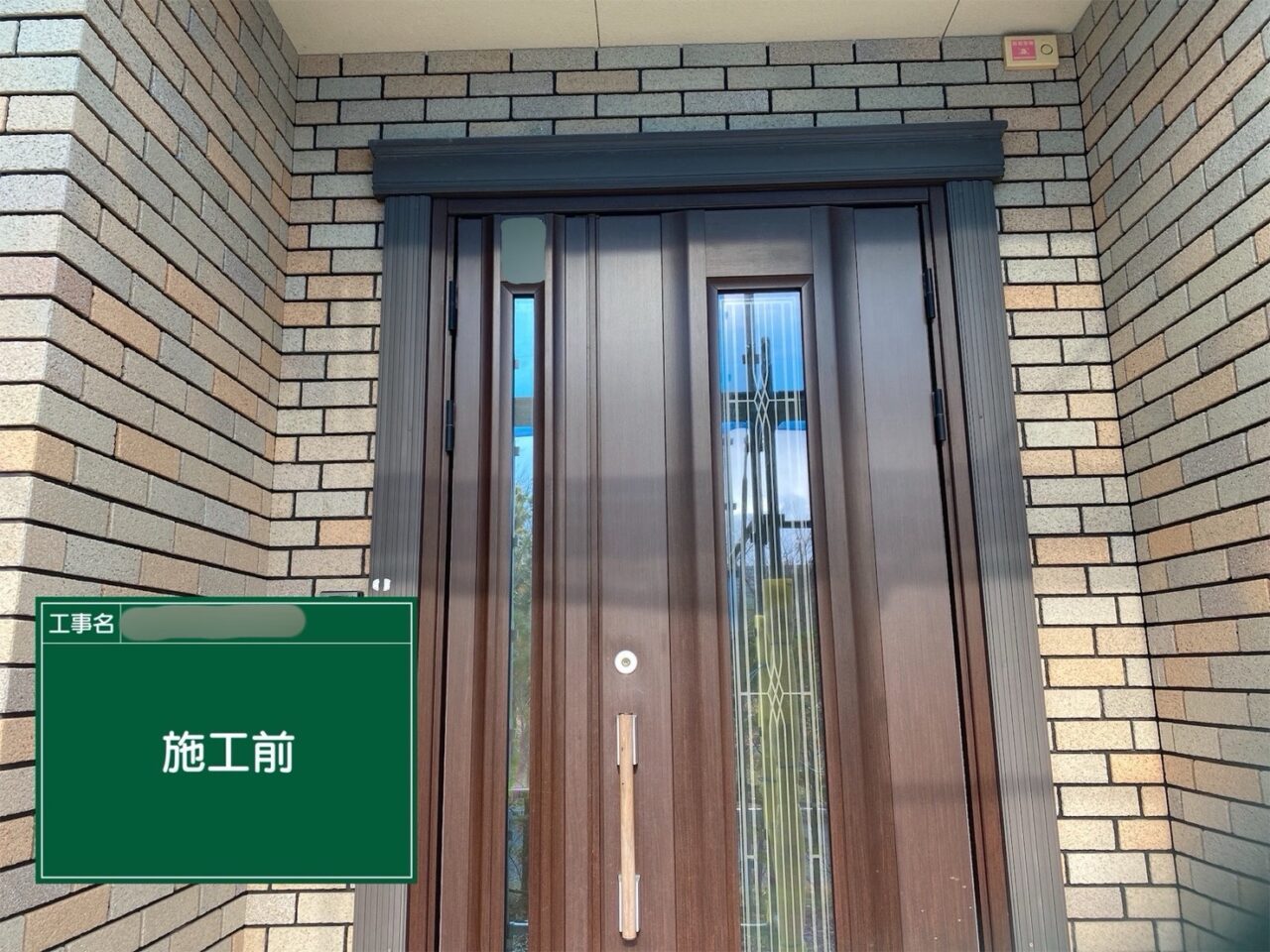 玄関枠に下塗りをしています。