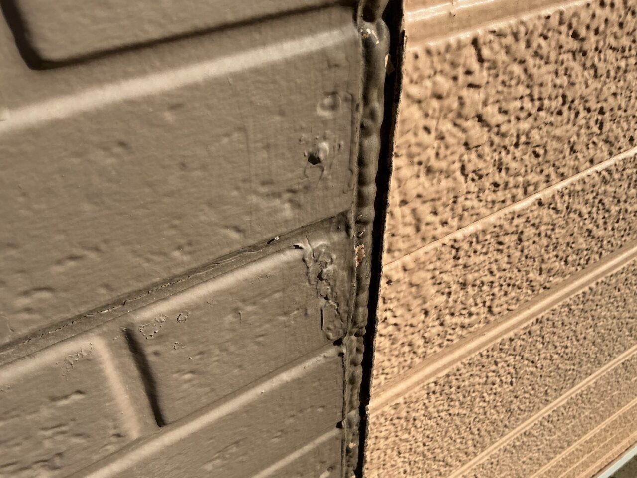 経年劣化によりシーリングが硬化し、膨れが見受けられます。