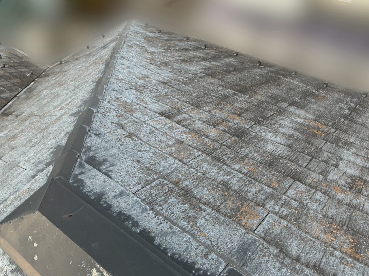 屋根の塗膜が劣化したことにより、色褪せが見受けられます。