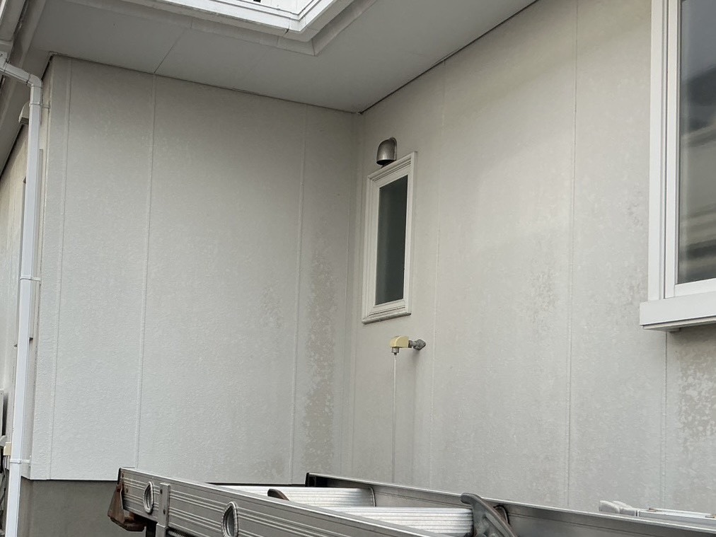 紫外線や雨などの影響を受けて塗膜が劣化し、剥がれている状態です。