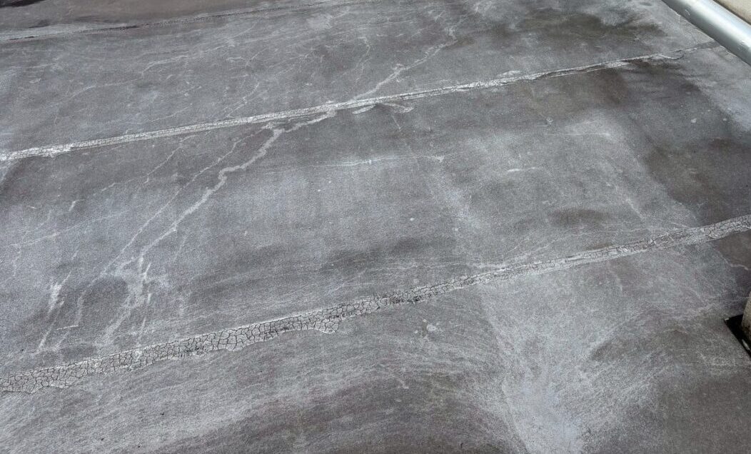 雨、風、紫外線などの影響により、屋上の防水面が色褪せている状態です。
