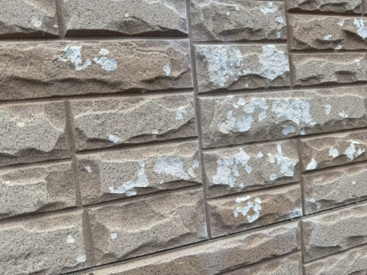 外壁に塗膜の剥がれが見られました。外壁も屋根同様、防水機能が低下している状態です。