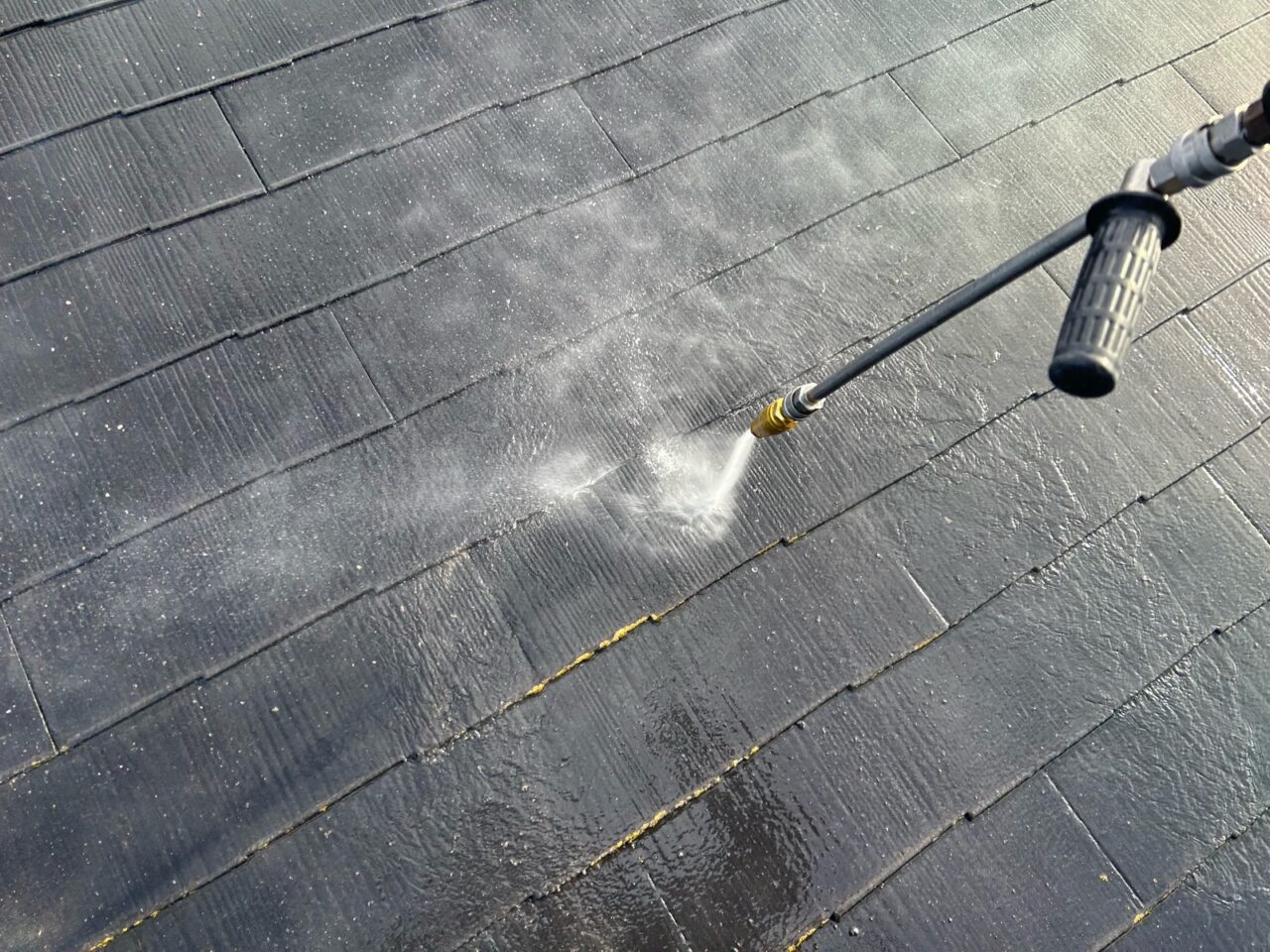屋根の高圧洗浄をしています。