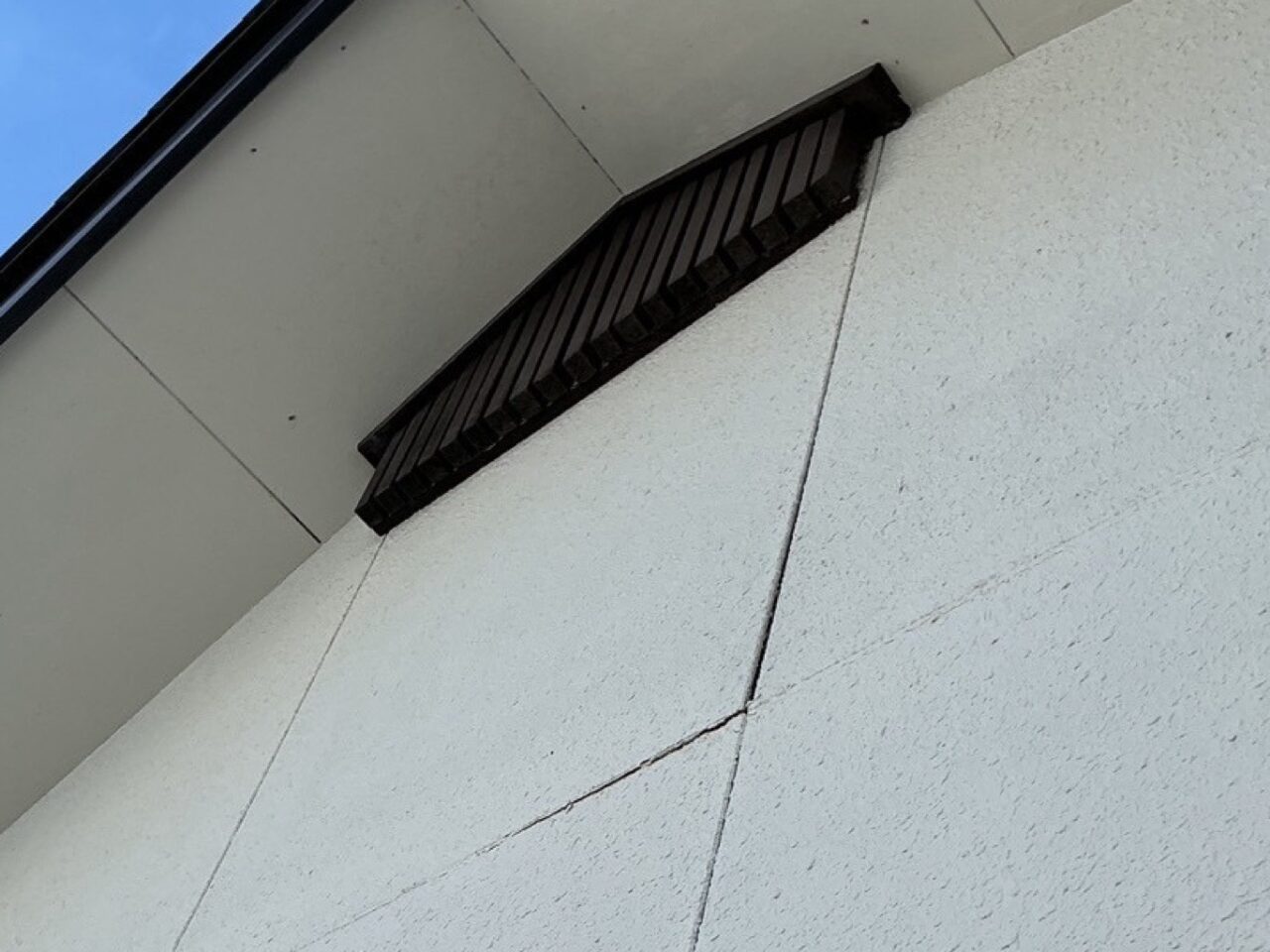 吸水に伴う膨張・収縮によって、外壁材の反りや浮きが見受けられます。
