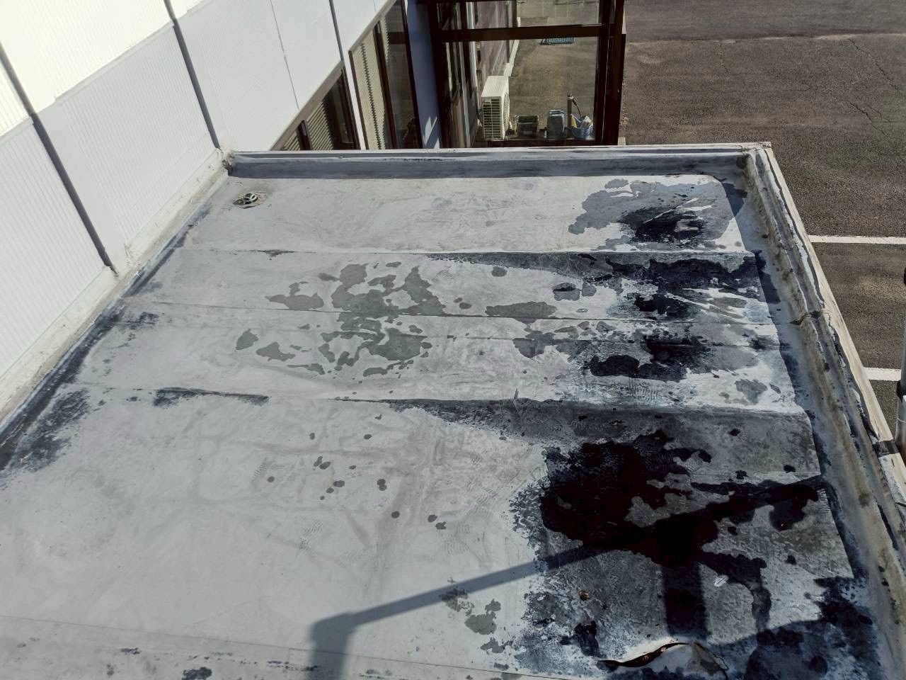 防水機能の低下により、苔やカビが発生している状態です。 苔やカビによって雨水が流れづらくなってしまいますので、防水層を劣化させる原因になり得ます。
