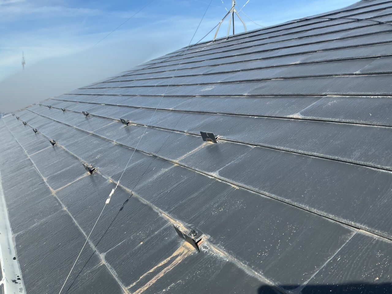 屋根の塗膜が劣化したことにより、色褪せが見受けられます。